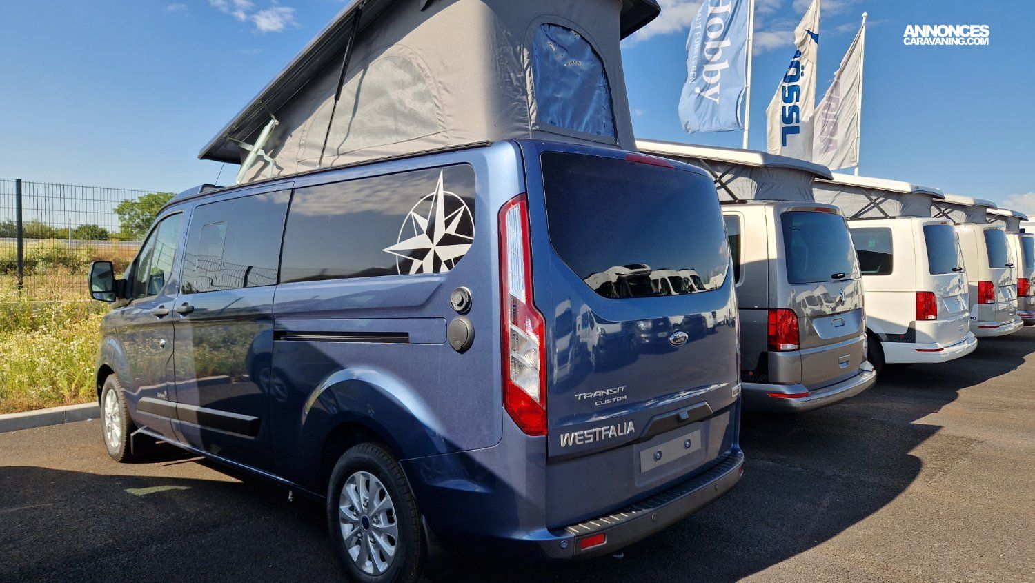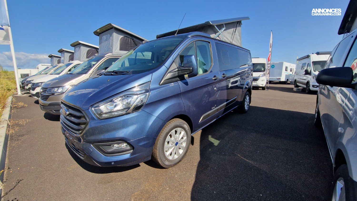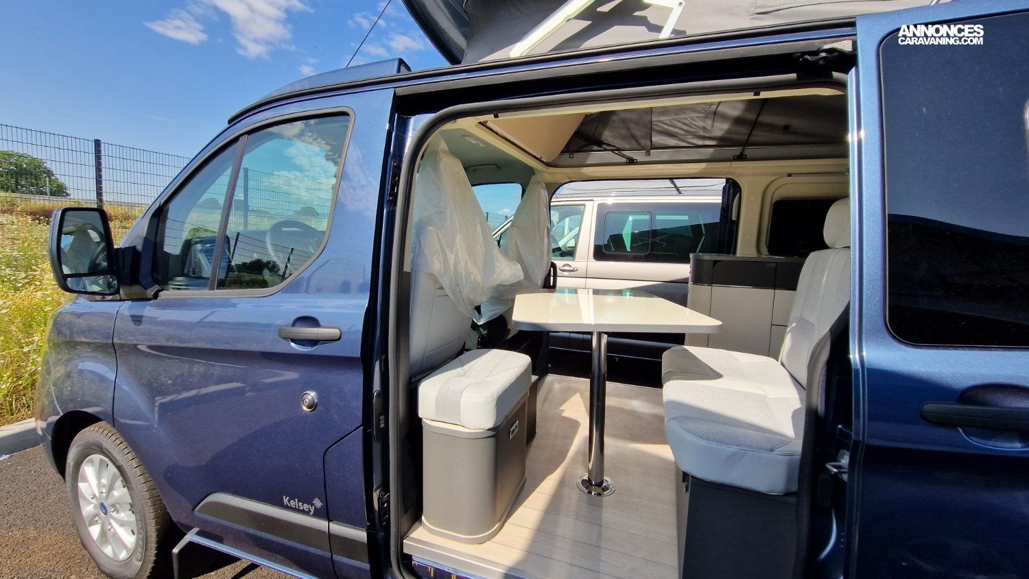 Kelsey 5,34m 3T Ford Transit Custom 2.0 EcoBlue / 136 ch / BVA 6 / Bleu AZUR / Sellerie Bi-matière "Missouri"