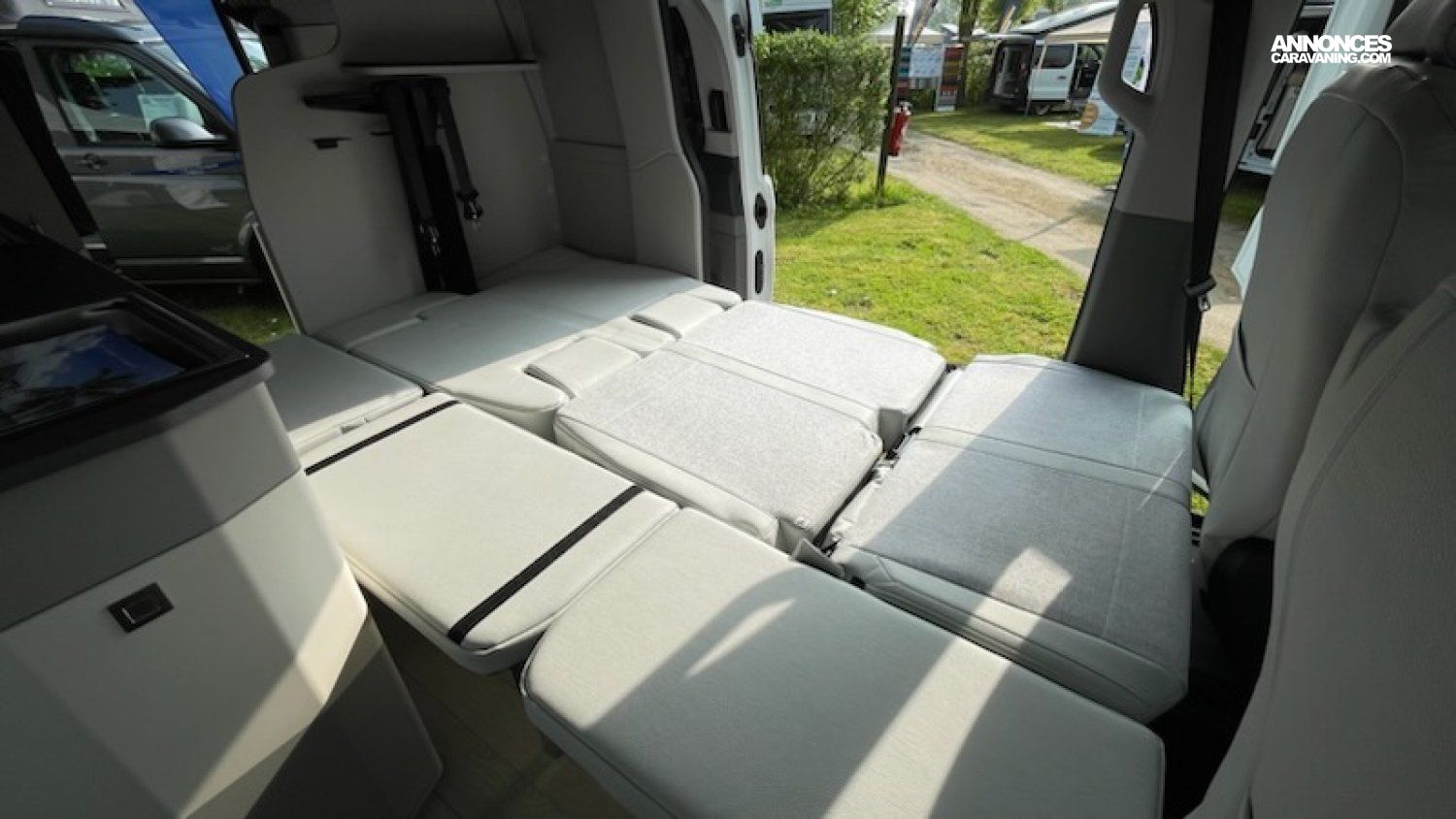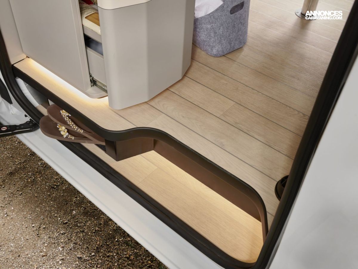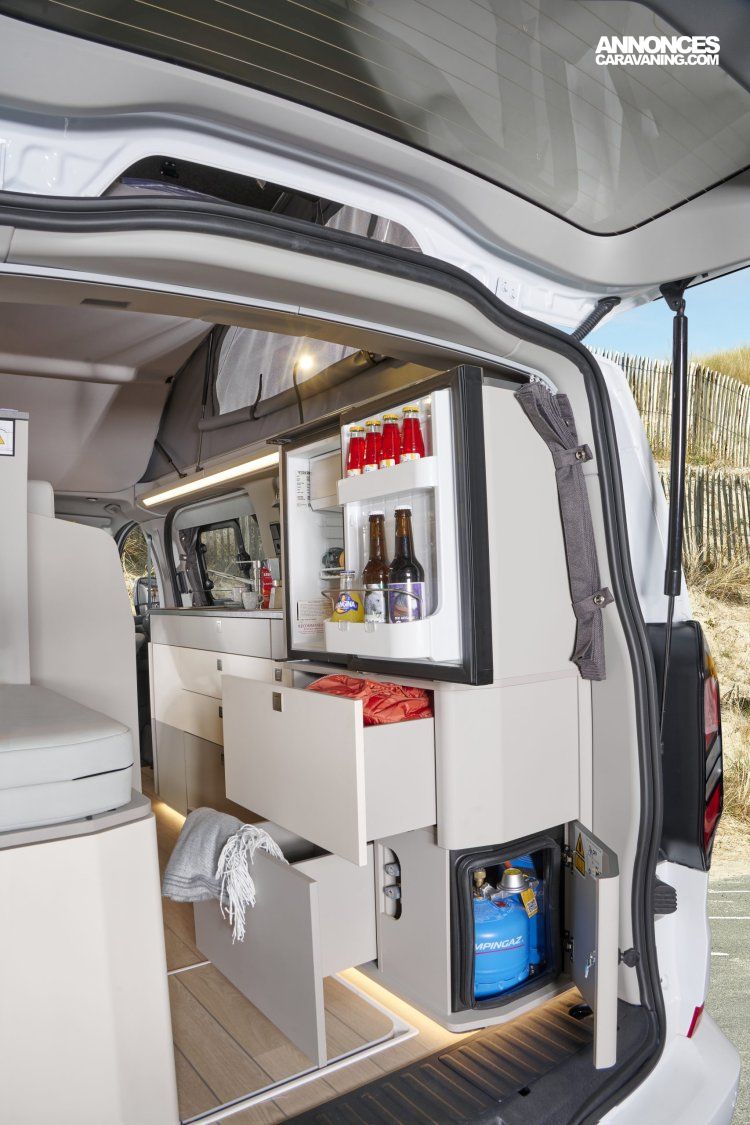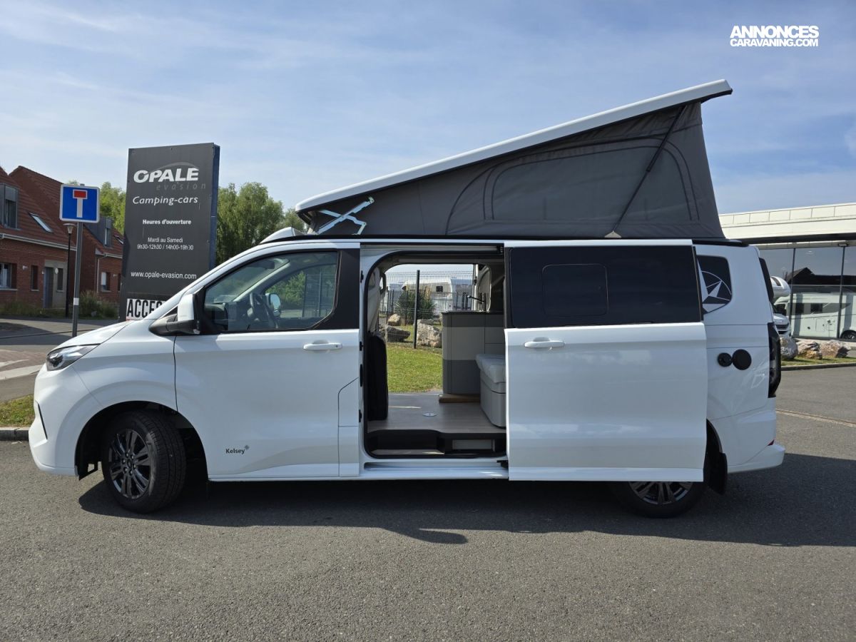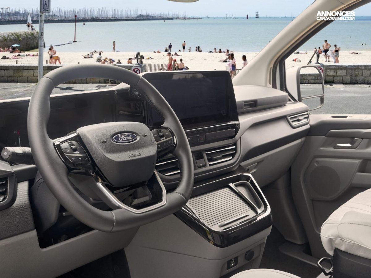 Banquette électrique type BZ, batterie cellule 92 ah AGM, chauffe eau pour évier et douche, Kit outdoor (étui avec 2 sièges de camping et intégration dans le hayon arrière de la table avec 4 pieds ajustables), portes latérales coulissantes droite et gauche, pré-disposition électrique panneau solaire et attelage, rideaux arrière latéraux opacifiants, sellerie bi-matière Missouri, tapis de cabine, variateur d’intensité lumineuse LED