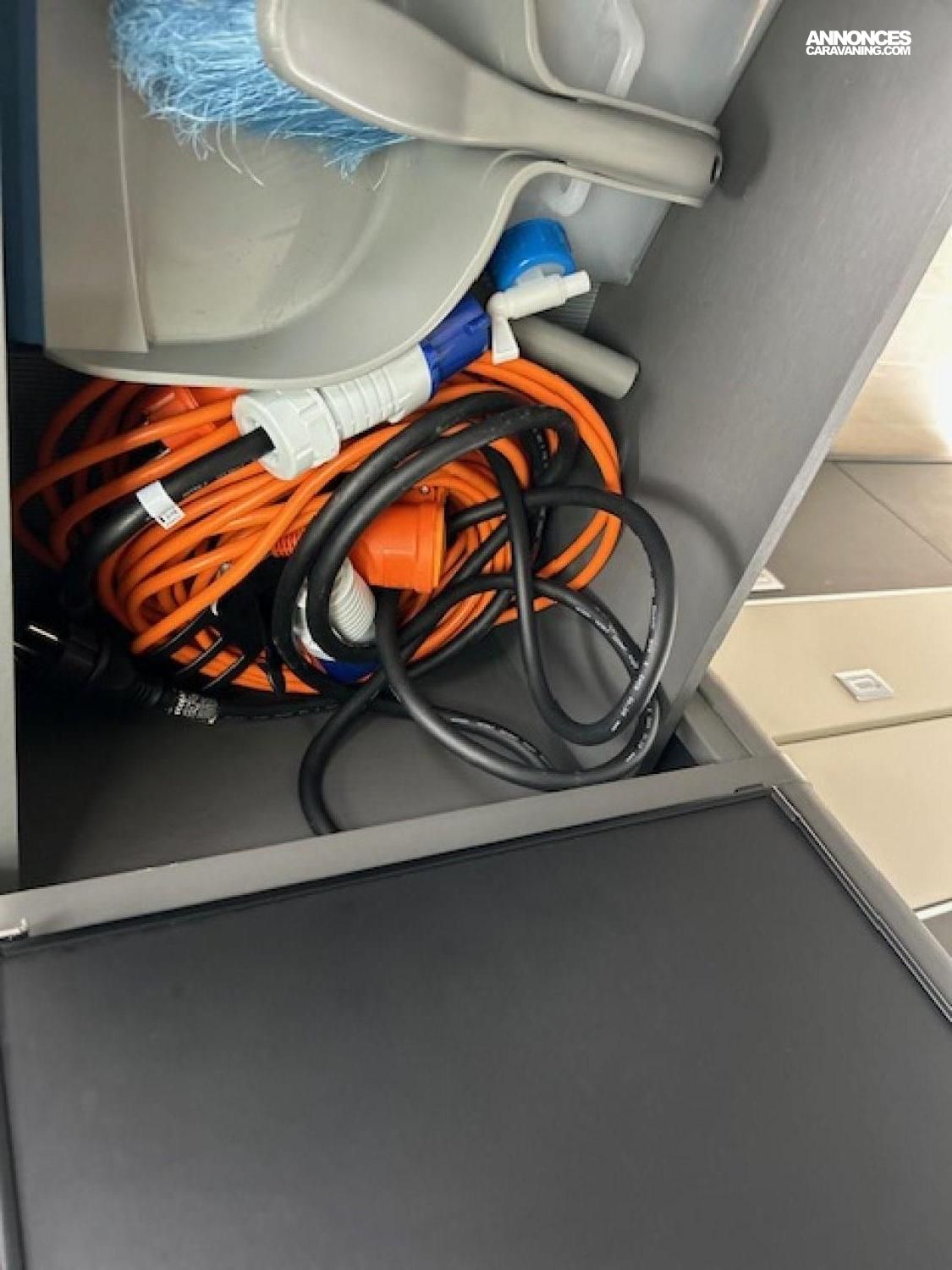 De nombreux accessoires sont fournis tels que : extension en toile arrière, cales de mise à niveau, rallonges électrique, bouteilles de gaz, vaisselle...