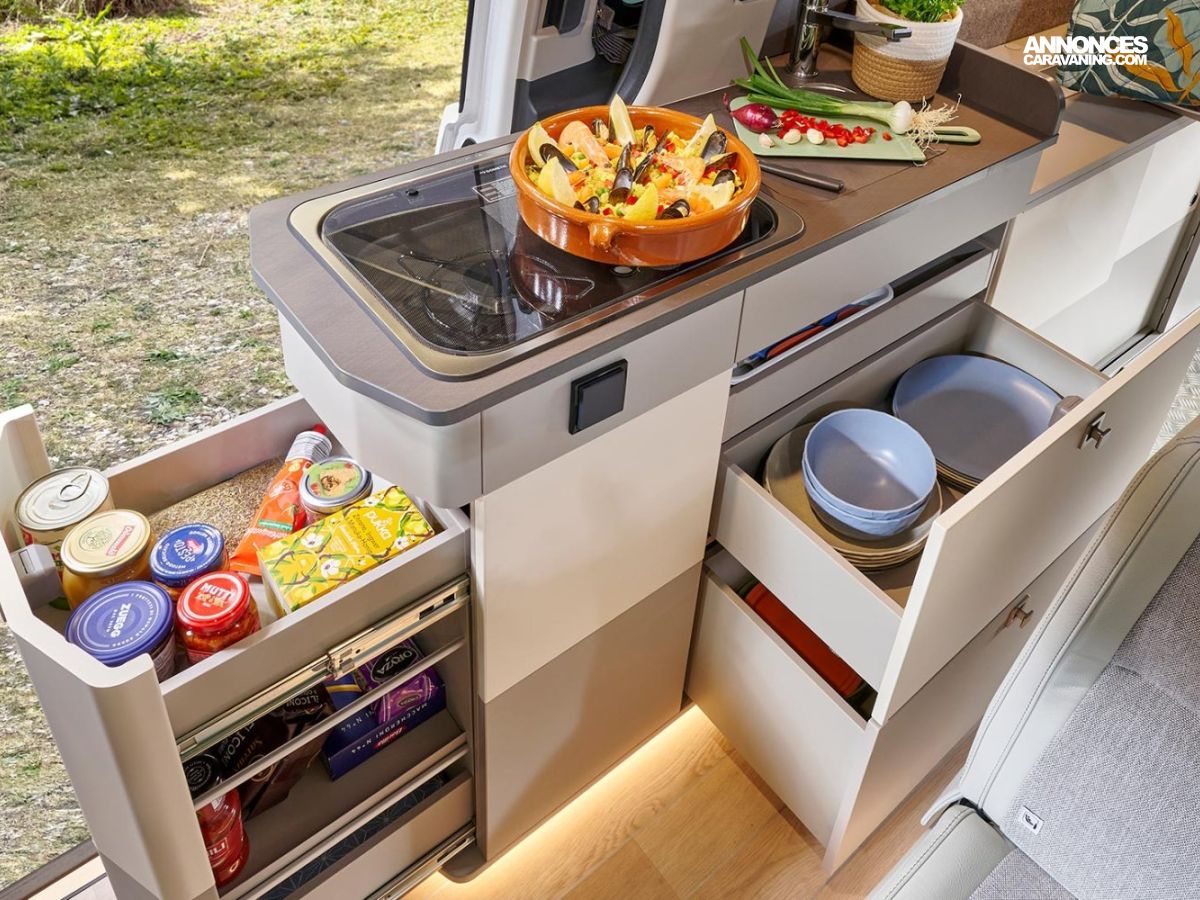 Sa nouvelle conception optimise l’espace intérieur tout en intégrant de nombreux équipements de confort : lit modulable, soute XXL, rangements astucieux, chauffage, et connectivité embarquée. Un van idéal, d’une hauteur de 2m04, pour les escapades où confort et fonctionnalité se rencontrent.