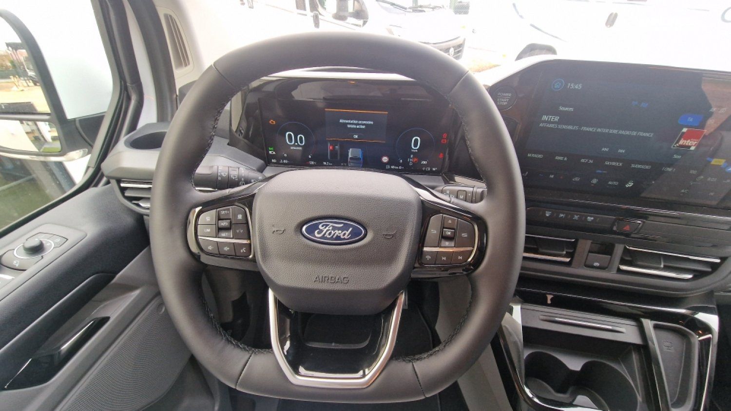 Bouton de démarrage Keyless + ouverture mains libres, Bouton intérieur d'ouverture hayon, Caméra de recul (vue arrière / dessus), Climatisation cabine à régulation automatique, Ecran 13" (Compatible Android auto & Apple car play), Frein de parking électrique, jantes 17'' gris carbone + pneumatiques 215/60 R17, Pare-brise dégivrant Av/Arr, Pack Drive: Aide au maintien dans la voie, Alerte de circulation à contre-sens, Alerte de vigilance conducteur, Aide au stationnement AV/AR, Assistant pré-collision (caméra), Reconnaissance des panneaux de signalisation, Contrôle actif de pression des pneumatiques, Phares LED avant (directionnels / commutation auto feux de croisement-route), Régulateur / limiteur de vitesse intelligent (caméra de reconnaissance des panneaux de signalisation), Rétroviseurs extérieurs dégivrants, rabattables électriquement, Sièges cabines chauffants avec réglage lombaire, Système audio 2 - Radio FM/DAB à 4 haut-parleurs (Commandes au volant et vocales-Bluetooth-prise USB-c), Tapis cabine, Vitres latérales et arrière teintées, Avec Ford Pass Connect : Fermeture centralisée / Géolocalisation / Démarrage à distance sur BVA