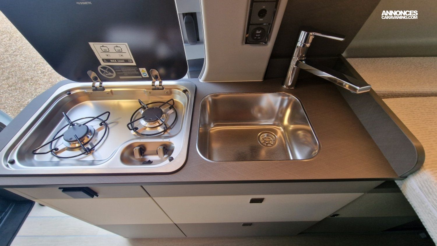 Chauffage Webasto 2000W, Cuisine avec évier inox et plaque de cuisson 2 feux, Douche extérieure, Interface USB, Isolation latérale 6 mm: mousse + film alu, Plancher 35 mm d'épaisseur avec isolation mousse polyuréthane, Réfrigérateur à compression 51L, Réservoirs eaux propres 50L / usées 50L, Rideaux isotherme cabine, Toile de toit grande ouverture à 230° avec moustiquaire, Toilettes fixe, Eclairage soute directionnel