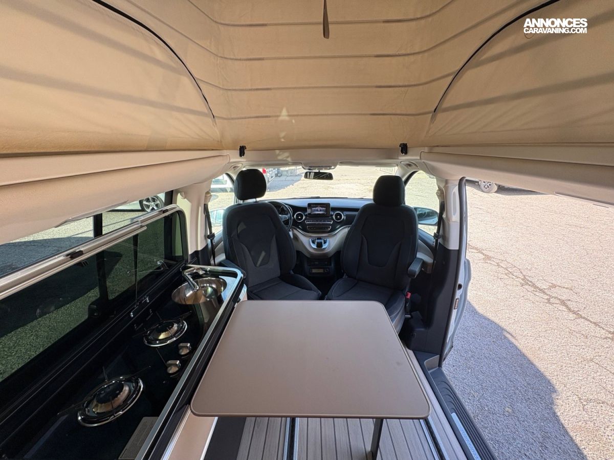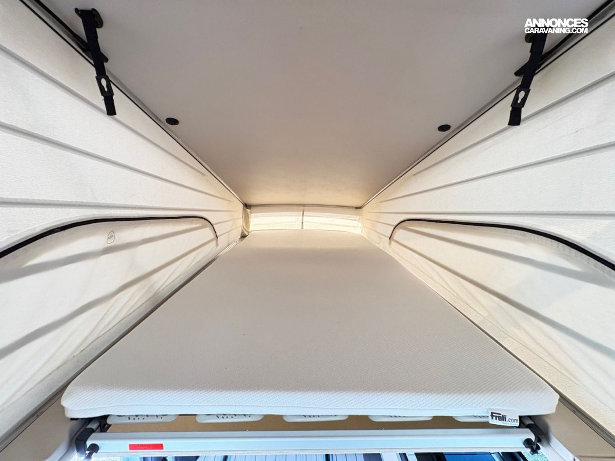 Autonomie et discrétion assurées grâce à la gazinière deux feux, réfrigérateur à compression et stores occultants sur toutes les vitres.