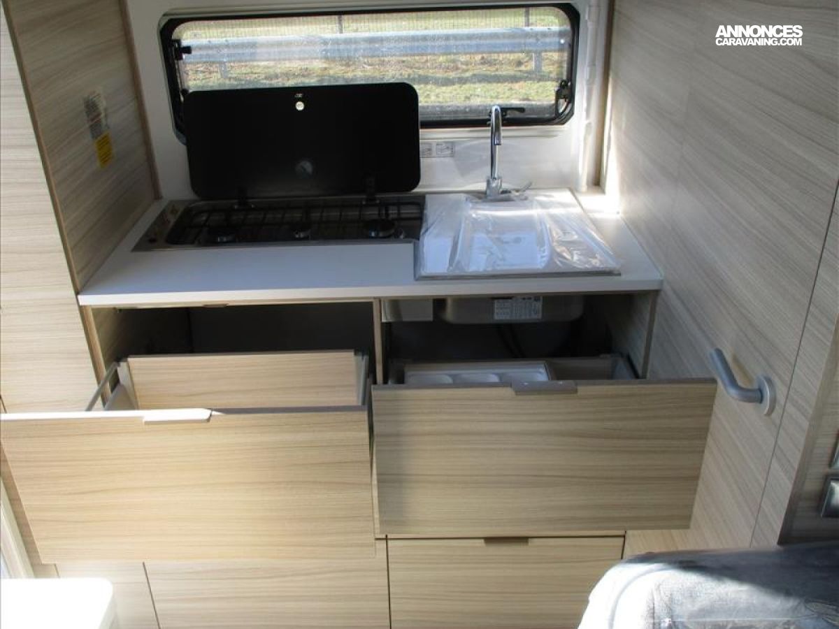 VERSION AVEC LIT CENTRAL AVANT /SALON U LATERAL ET CUISINE ARRIERE .BEAUCOUP DE RANGEMENTS EGALEMENT .BREF TOUT Y EST