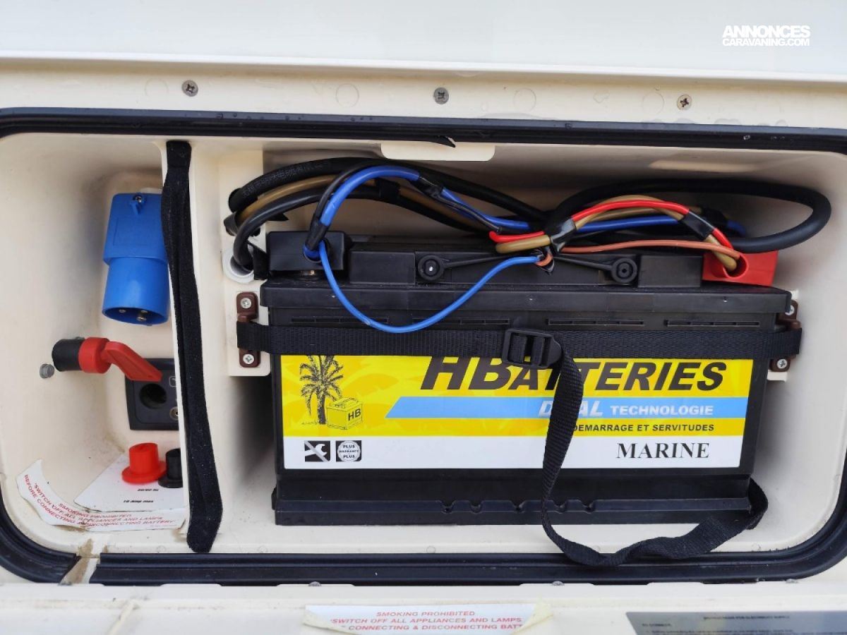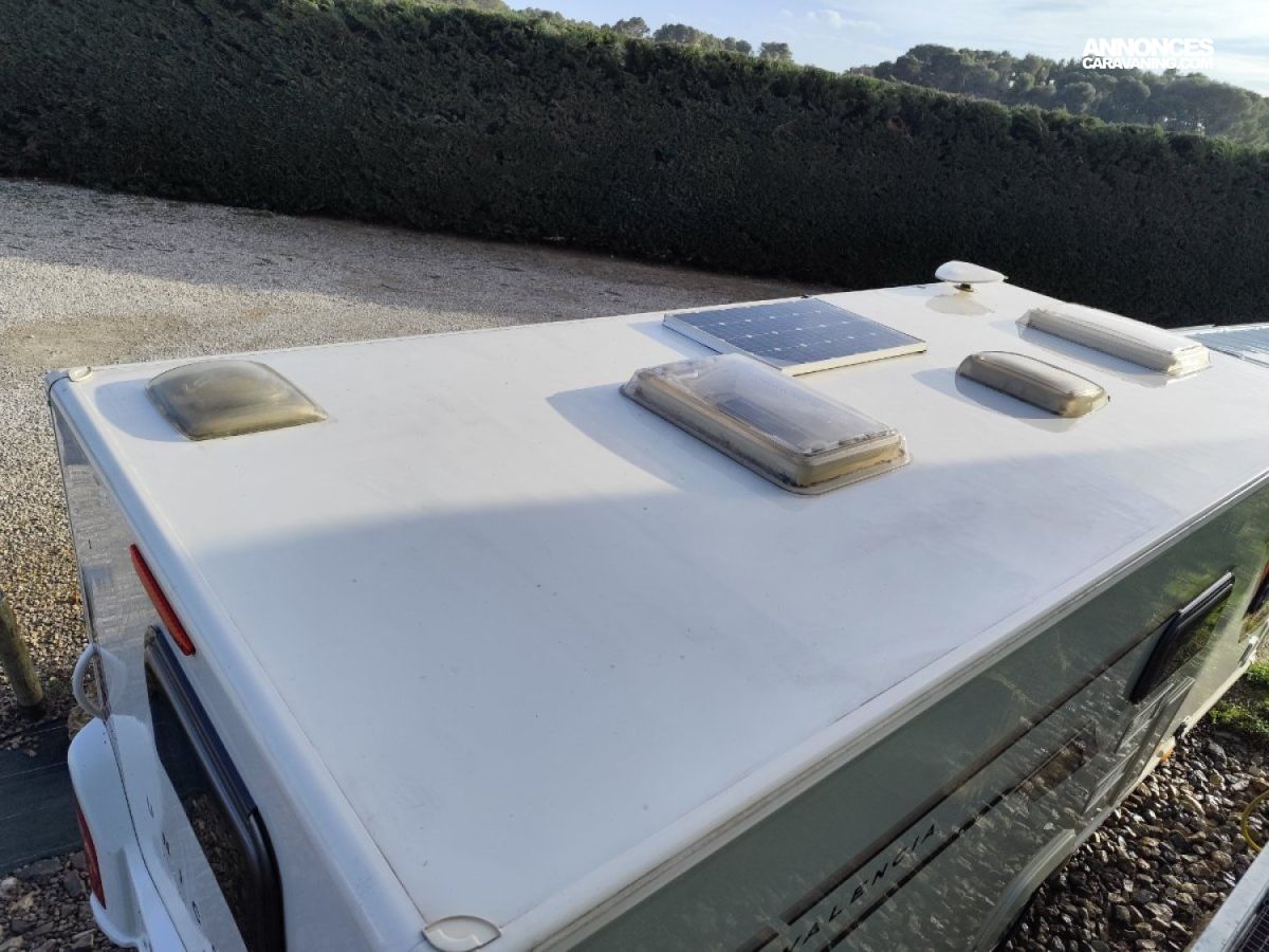 Accessoires : Antenne TV, autoradio, prises extérieures (Gaz, TV, 220V), roue de secours sous châssis, cric Alko, antivol de roue Alko.