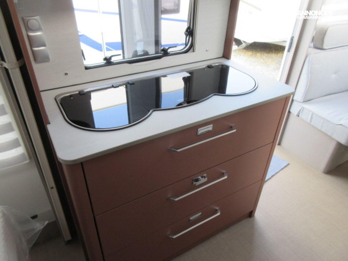 Trappe extérieure , Baie arrière , Revêtement polyester , Porte d'entrée XL avec poubelle intégrée , Lanterneau, Réfrigérateur 130 L avec compartiment 15 L congélateur , Tiroir de cuisine à rappel automatique , Evier, cuisinière à gaz avec allumage électrique et couvercle en verre , Rail multifonction sur crédence , Bloc cuisine terracotta, Boiler électrique, capacité 5 L, 300W, Réservoir eau propre 44 ou 15 L, WC à cassette, Chauffage gaz S 3004, Air pulsé , Pré-installation climatisation de toit , Home Light avec station de chargement et d'accueil , Eclairage LED, Prises USB, Transformateur