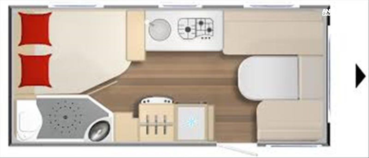 Chauffage a Gaz avec air pulsé, Salon sur avant, Table 80x80, Douche cloisonnée avec parois a déplier, Anti lacets, Vérins renforcés, Réfrigerateur160L, WC a cassette, Electricité 230/12V avec transformateur