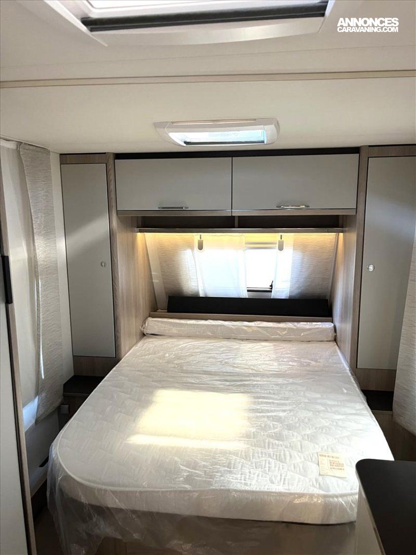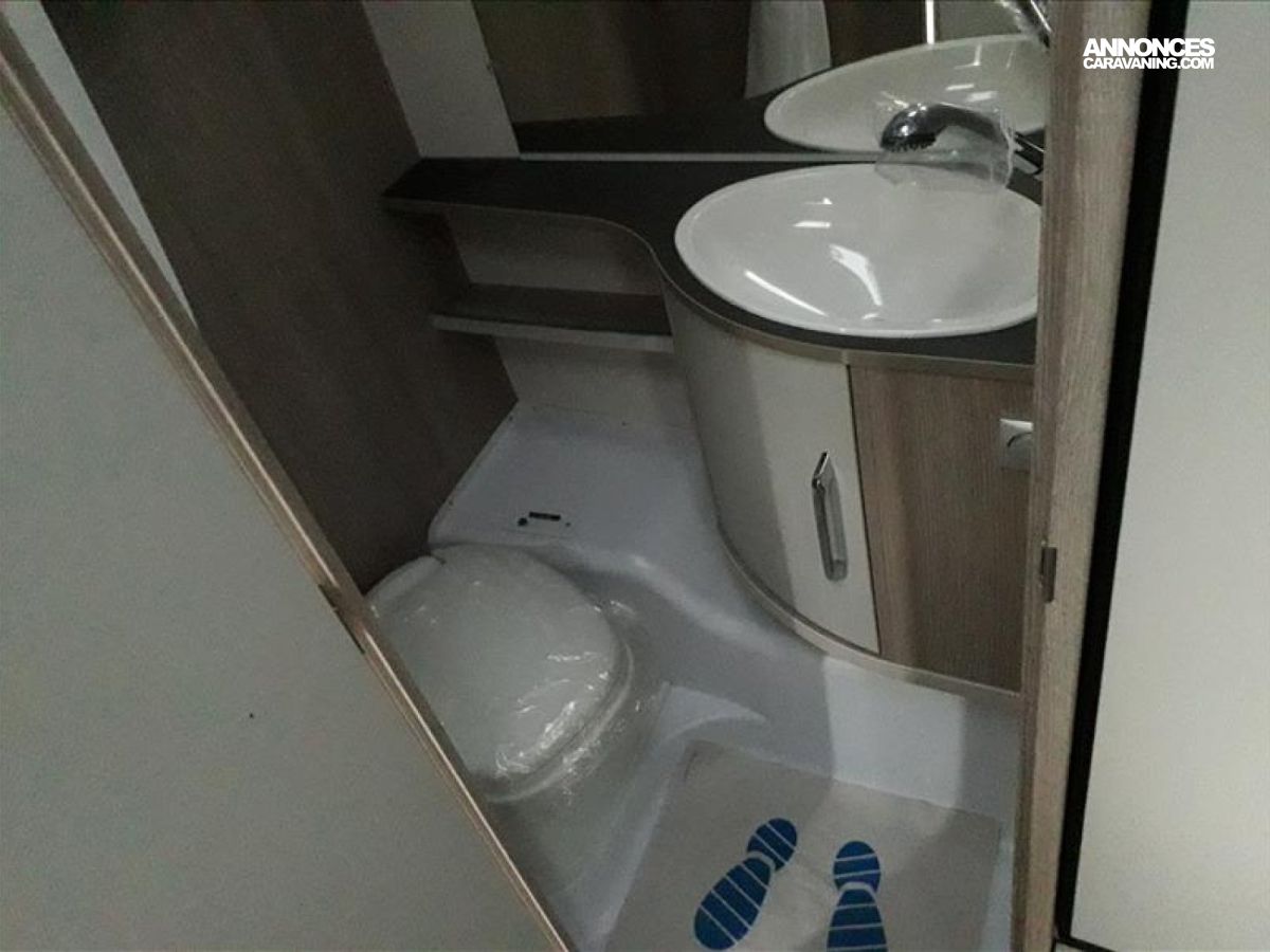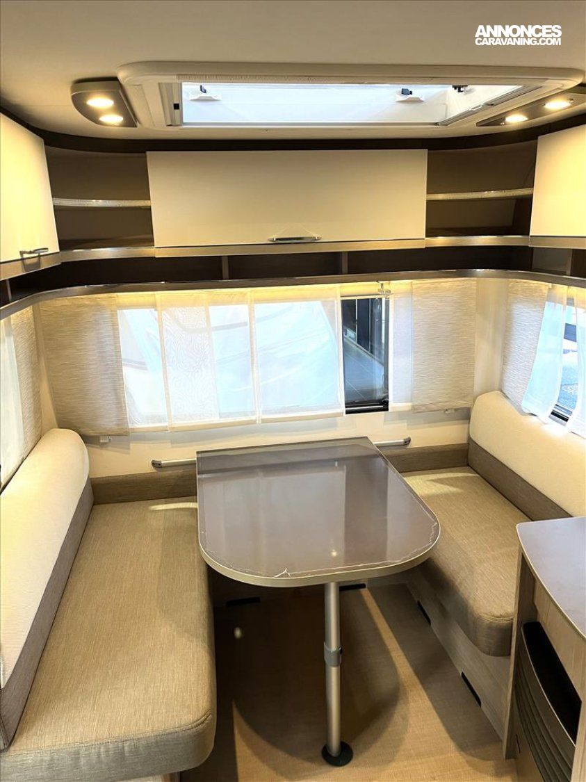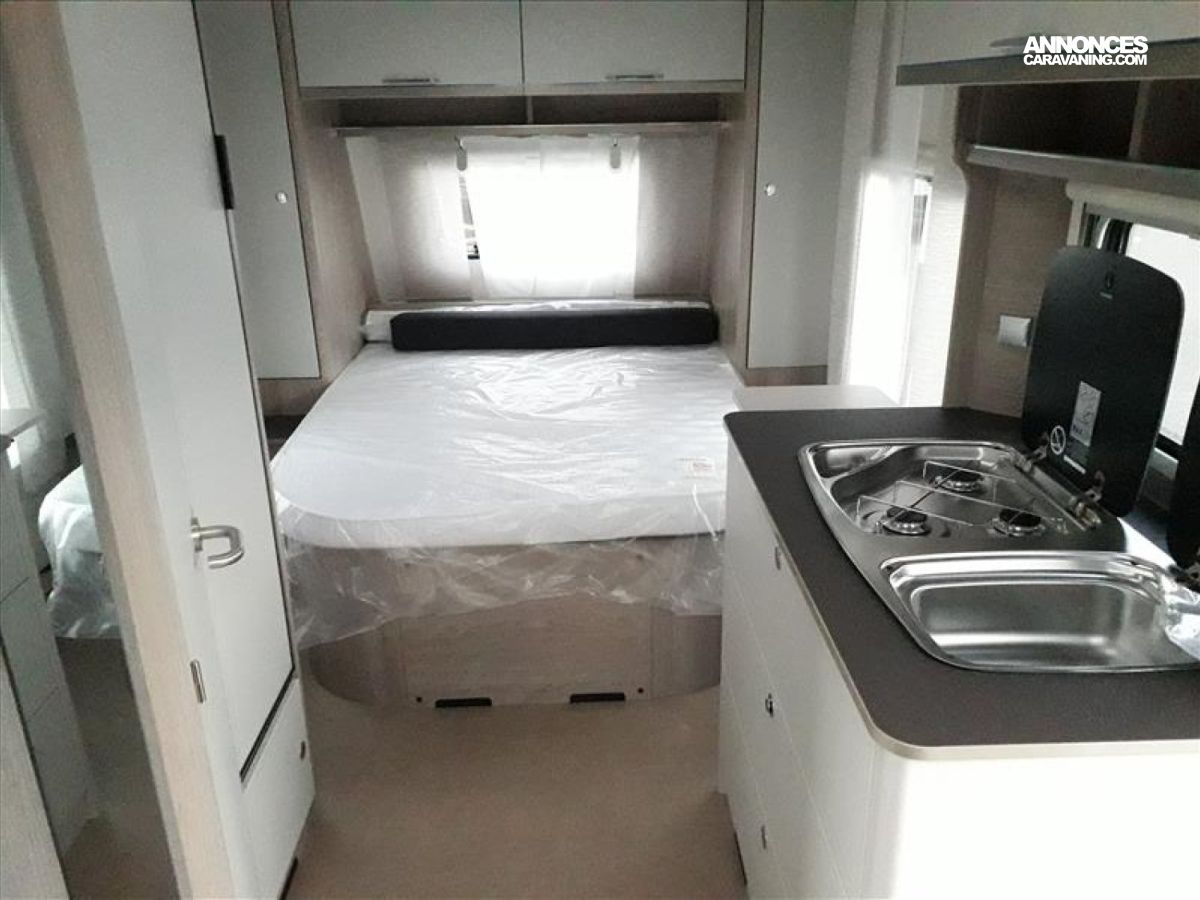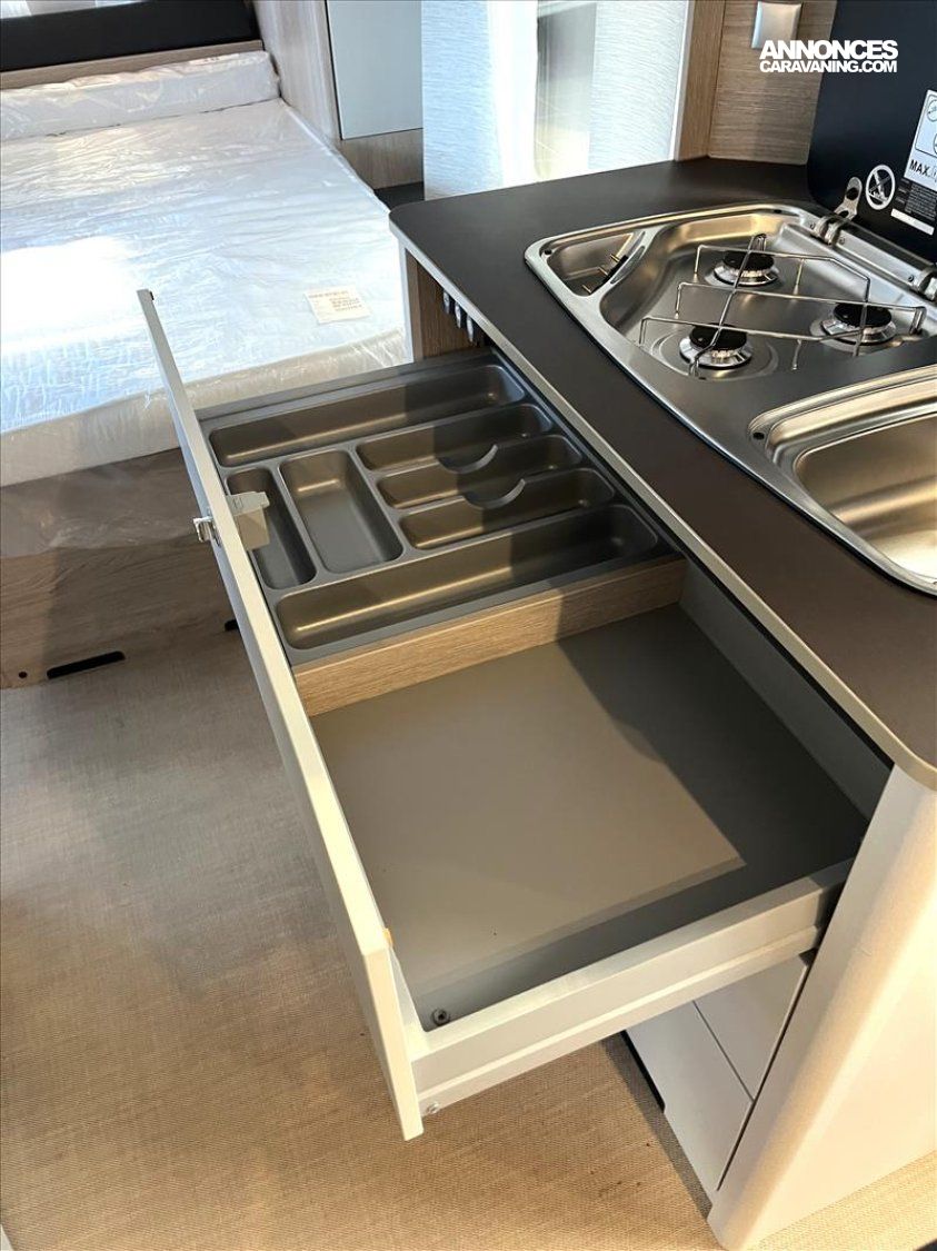 Baies double vitrage ouvrante teintées avec store, Chassis en acier galvanisé ultre-léger, Evier, cuisinière à gaz 3 feux, Poubelle intégrée à la porte d'entrée, Flexible de douche, Isolation du passage de roue, Chauffage S 3004, Détecteur de fumées, Eclairage d'auvent à LED, Stabilisateur, Support de roue de secours, Tiroirs de cuisine à rappel automatique, Verins de stabilisation, WC cassette, Porte d'entrée cellule monobloc