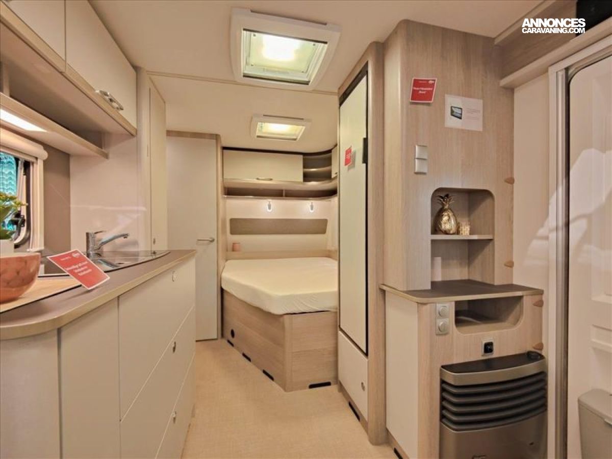 Chauffage S 3004, Dossier hiver, Flexible de douche, Poubelle intégrée à la porte d'entrée, Stabilisateur, Support de roue de secours dans le coffre a gaz, Tiroir de cuisine à rappel automatique, Vérins de stabilisateur, Wc cassette, Isolation du pasage de roue, Lanterneau 40*40, Baie arrière, Chassis ena cier galvanisé ultra-leger