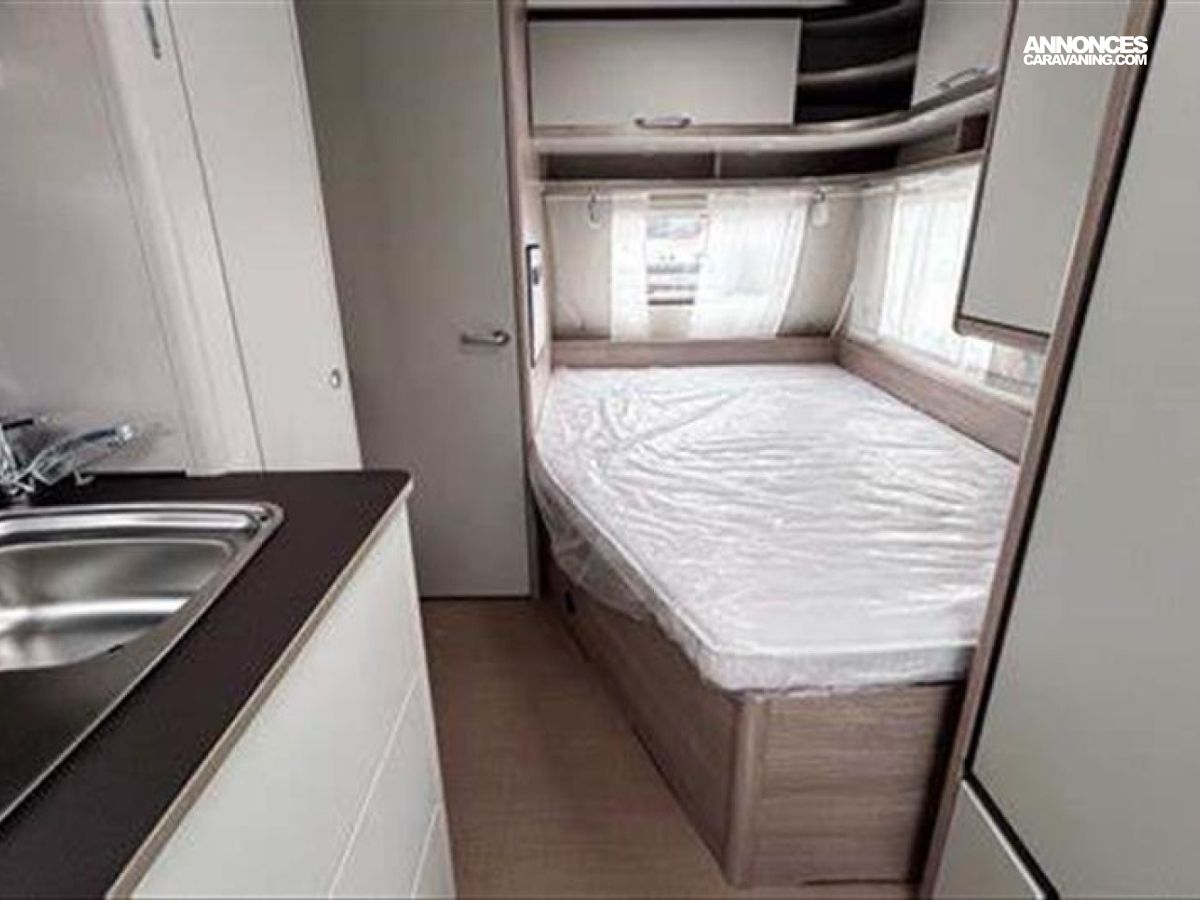 Chassis en acier galvanisé ultra-léger, Chauffage S 3004, Détecteur de fumée, Stabilisteur, Flexible de douche, Porte d'entrée monobloc, Poubelle intégrée à la porte d'entrée, Isolation du passage de roue, Eclairage d'auvent à LED, Vérins de stabilisation, Baie double vitrage ouvrantes teintées avec store, Prises électriques 230V, WC cassette, Eclairage LED 12v / 230 V, Évier, cuisinière à gaz 3 feux avec allumage électrique, Support de roue de secours dans le coffre à gaz, Tiroir de cuisine à rappel automatique, Transformateur 350 VA