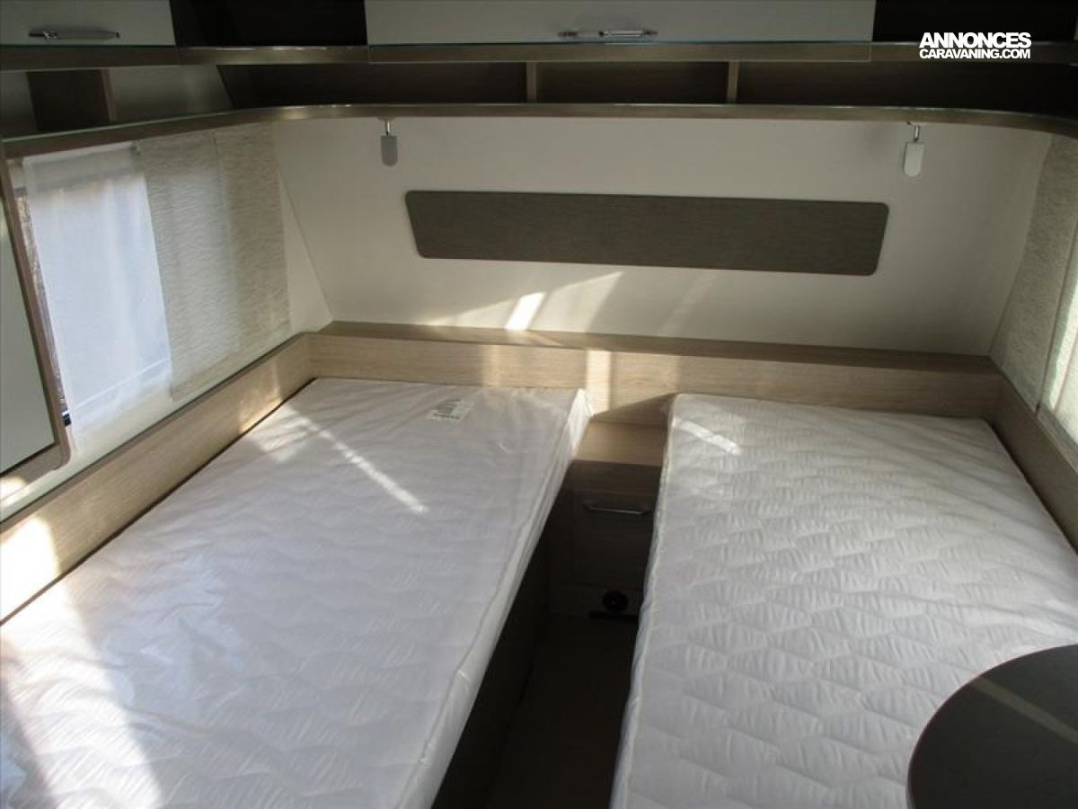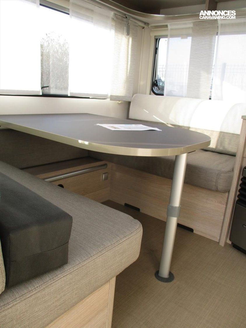Stabilisateur, Support de roue de secours dans coffre a gaz, Vérins de stabilisation, WC cassette, Porte d'entrée cellule monobloc, Sommiers a lattes, Baie double vitrage ouvrantes teintées avec store, Détecteur de fumées, Chauffage S 3004, Isoaltiondu passage de roue, Lanterneau 40 * 40, Chassis en acier galvanisé ultra-léger, Rideau de douche