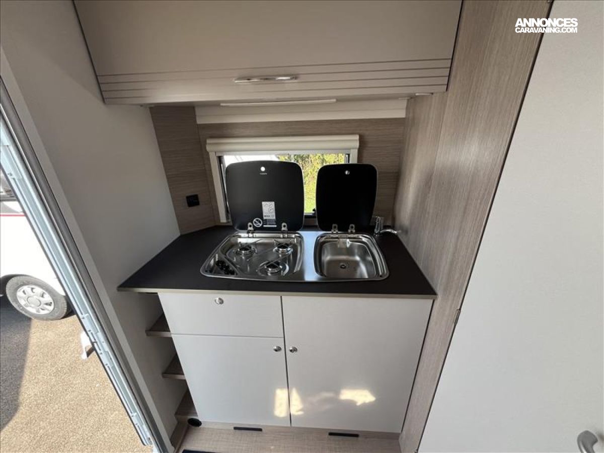 Verins de stabilisation, Réfrigérateur 142L, Chassis en acier galvanisé ultre-léger, Chauffage S 3004, Tête d'attelage ALKO AK 160, Eclairage d'auvent à LED, WC cassette, Isolation du passage de roue