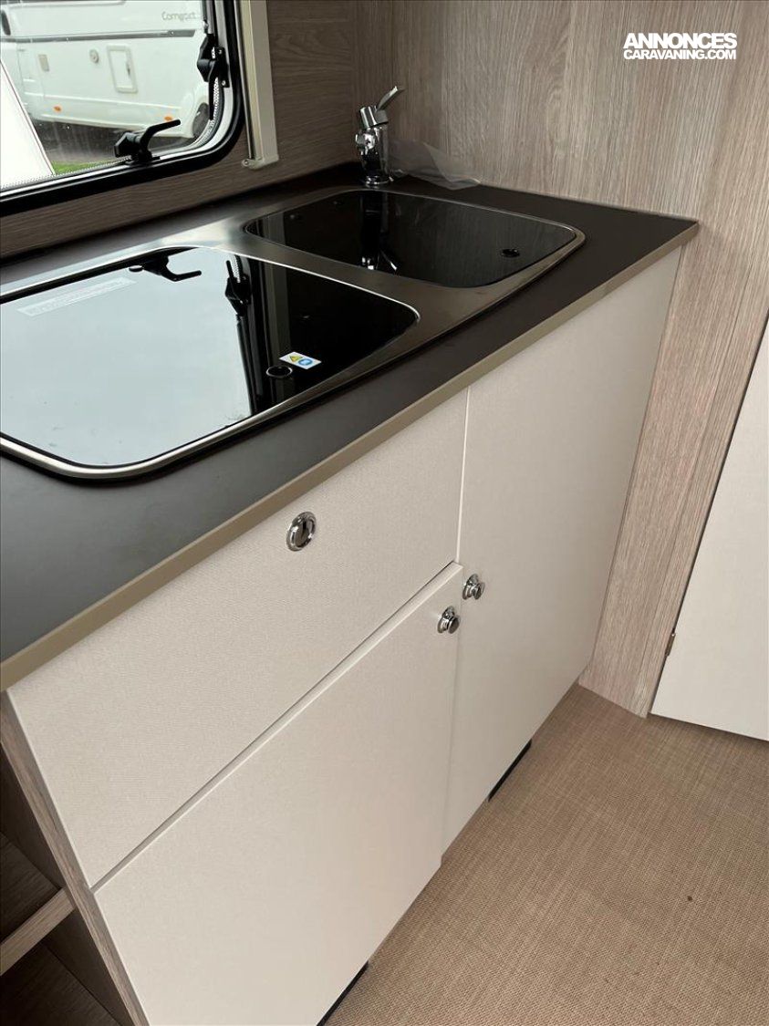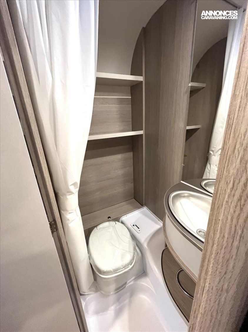 WC cassette, Chassis en acier galvanisé ultre-léger, Chauffage S 3004, Réfrigérateur 142L, Eclairage d'auvent à LED, Isolation du passage de roue, Tête d'attelage ALKO AK 160, Verins de stabilisation