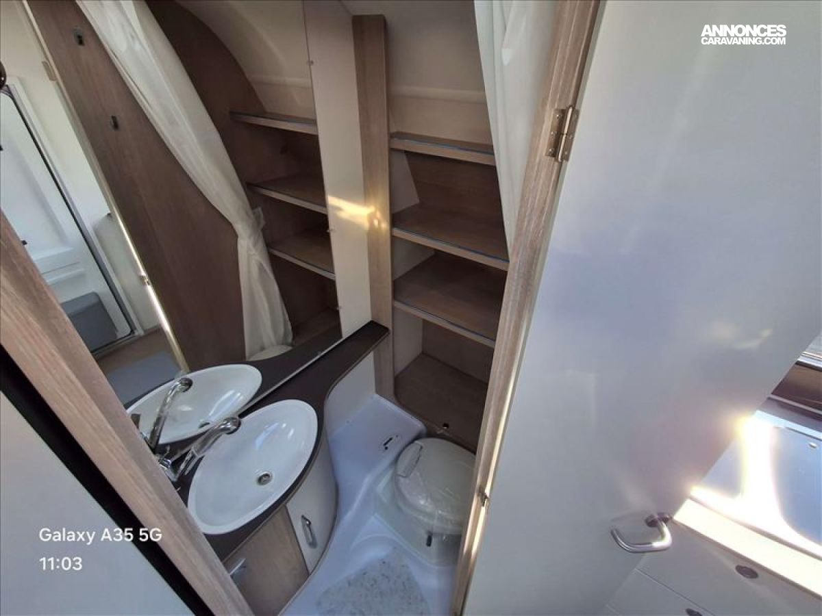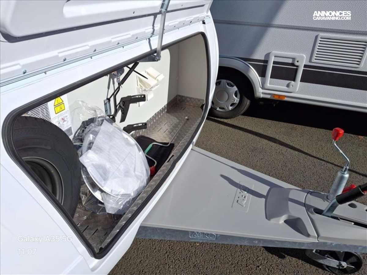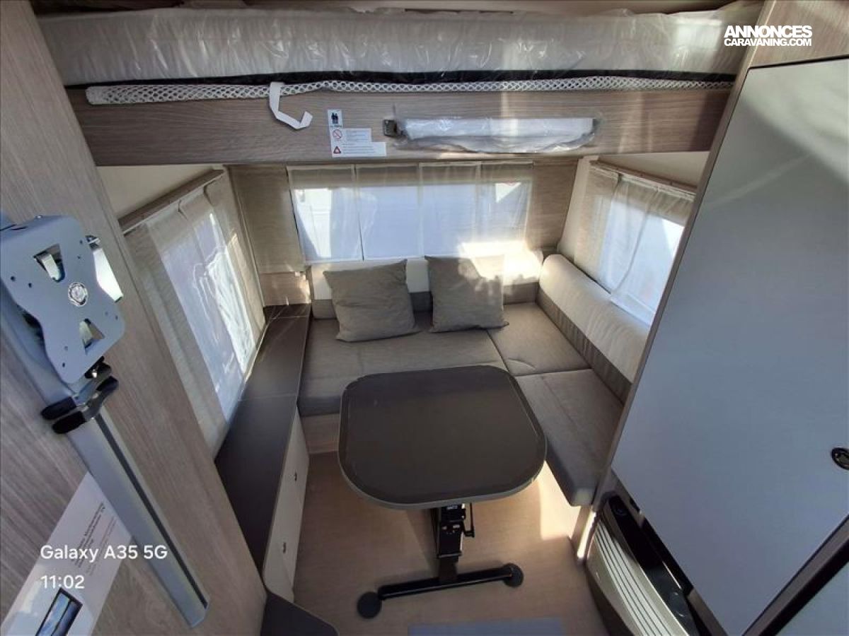 Baie double vitrage ouvrantes teintées avec store, Chassis en acier galvanisé ultra-léger, Chauffage S 3004, Détecteur de fumée, Eclairage LED 12v / 230 V, Eclairage d'auvent à LED, Flexible de douche, Isolation du passage de roue, Porte d'entrée cellule monobloc, Poubelle intégrée à la porte d'entrée, Prises USB, Prises électriques 230V, Stabilisteur, Support de roue de secours dans le coffre à gaz, Système de feinage automatique, Tiroir de cuisine à rappel automatique, Transformateur 350 VA, Vérins de stabilisation, WC cassette, Évier, cuisinière à gaz 3 feux avec allumage électrique