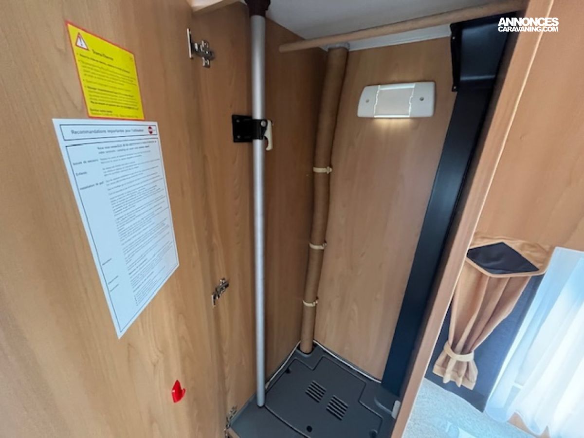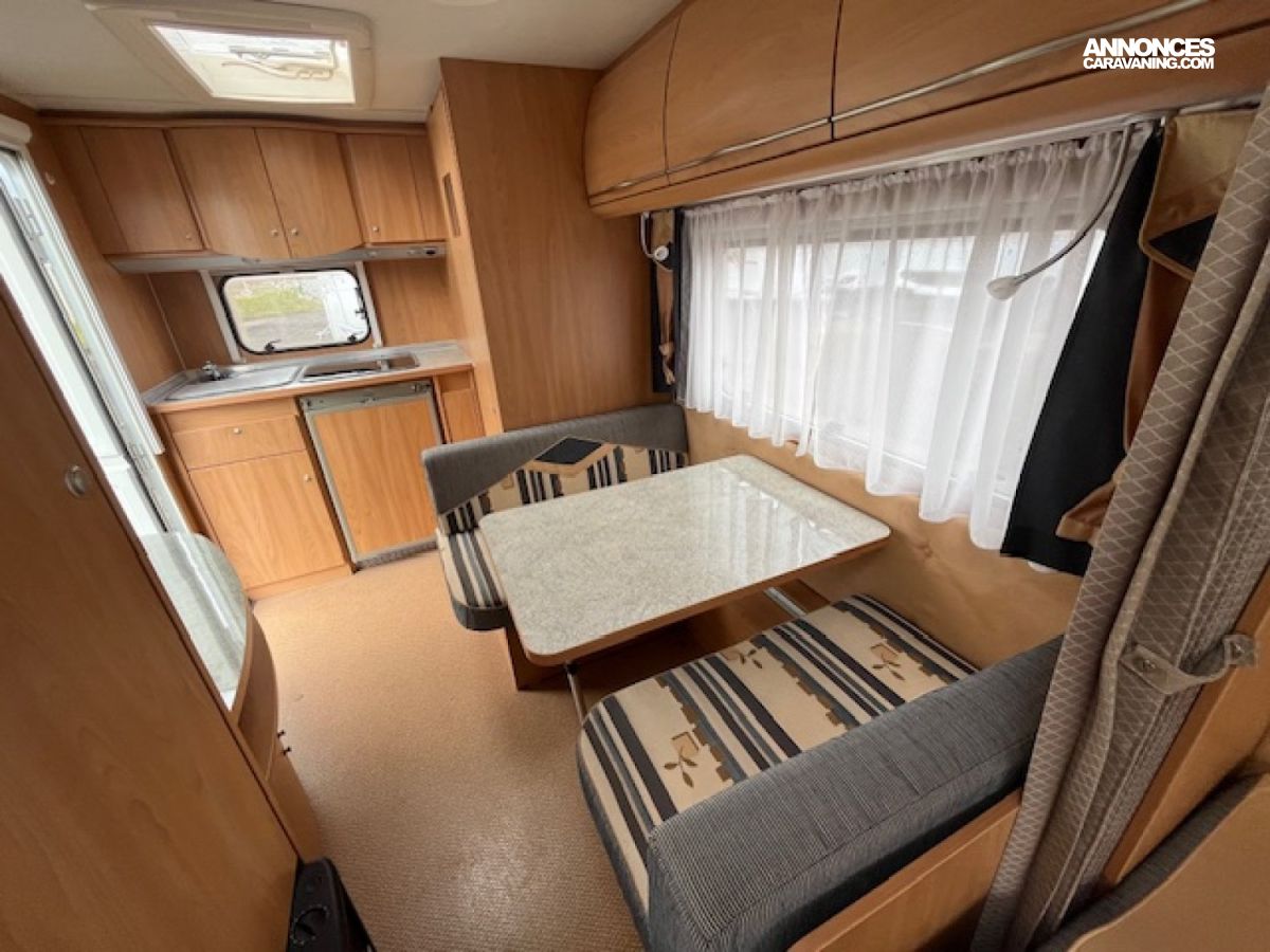 ANTI LACET, AMORTISSEURS, LIT TRANSVERSAL, ROUE DE SECOURS, SOLETTE, CHAUFFAGE GAZ, ANTENNE ET MAT, WC CASSETTE, 3 FEUX, SALON FACE A FACE