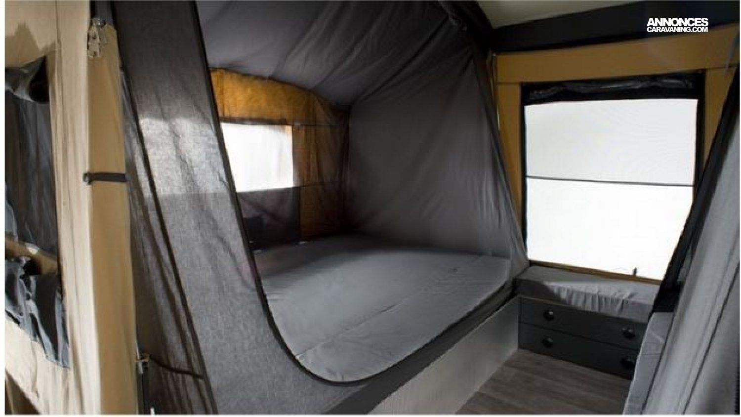 Un système de simple d'accès à vos bagages. La caravane est équipée du système EASY PACK qui vous permets un accès direct à vos bagages sans avoir à enlever la tente qui se trouve sur la remorque