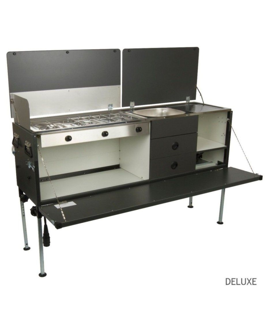 Cette caravane pliante vous assurera un confort intérieur en toutes circonstances grâce à sa grande fenêtre cuisine avec moustiquaire et volet pour une aération optimisée. Très grand séjour sous l’auvent, 2 chambres séparées offrant des couchages surélevés avec sommiers et matelas intégrés, de multiples rangements astucieux cousus dans la toile. Sous les plateaux de lits, vous pourrez ranger tout ce dont vous avez besoin pour votre séjour en camping ou créer des couchages d’appoints complémentaires grâce aux tentes intérieures en option