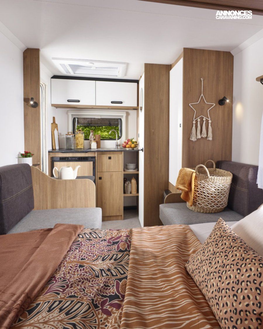 Cette caravane très agréable à vivre, vous offre un design intérieur moderne et exclusif. Sa dinette spacieuse et lumineuse, transformable en couchage pour 2 personnes, vous fera passer de merveilleuses nuits grâce à ses configurations 3 en 1 (lit transversal, lits jumeaux, lit longitudinal). Elle possède un coin cuisine avec une plaque à induction 1 feu, un évier inox et un réfrigérateur à compression de 85L qui raviront les cuisinières et les cuisiniers. Elle a également une jolie salle d’eau avec WC à cassette, lavabo et miroir.