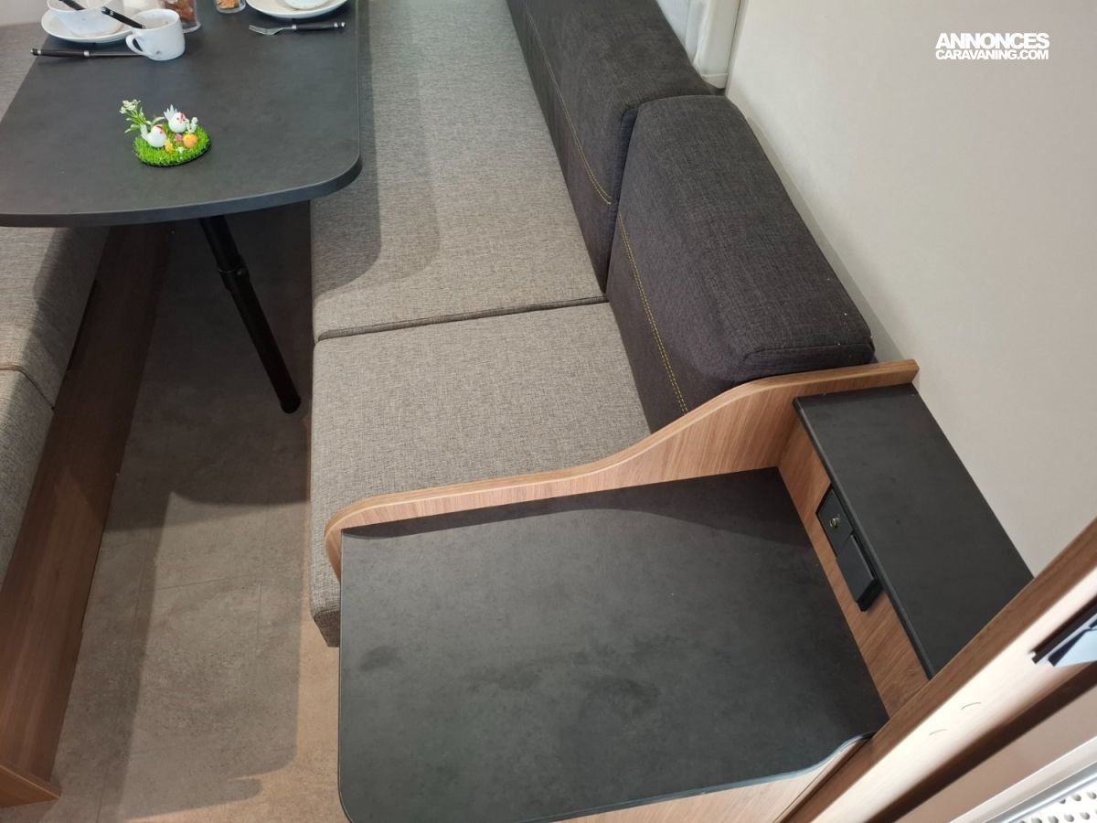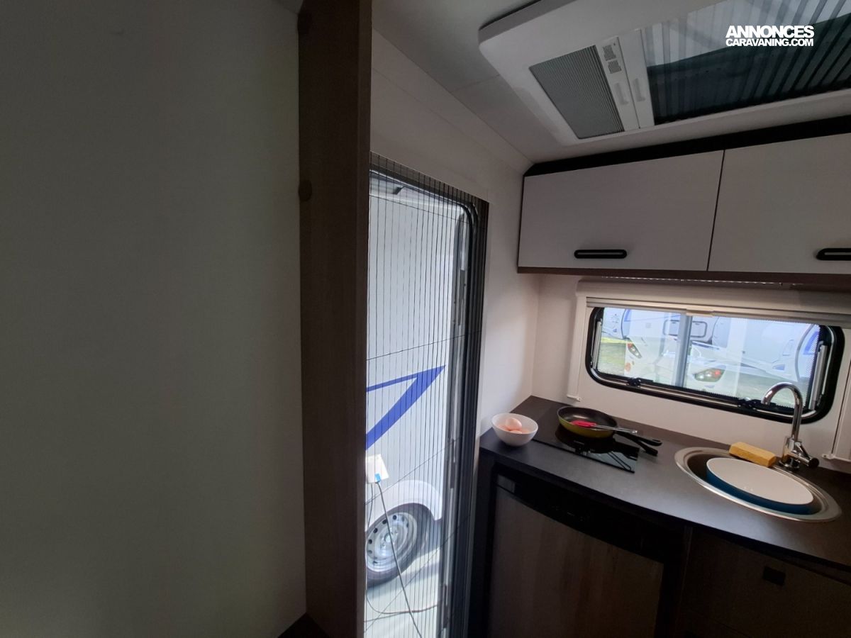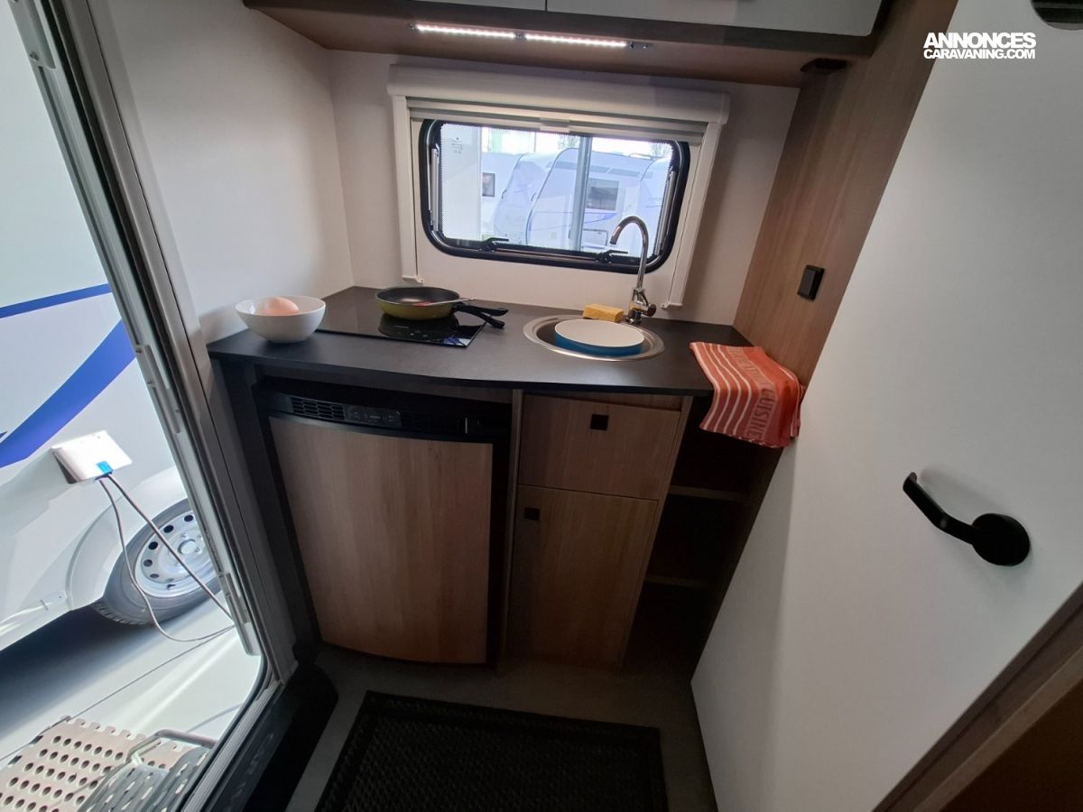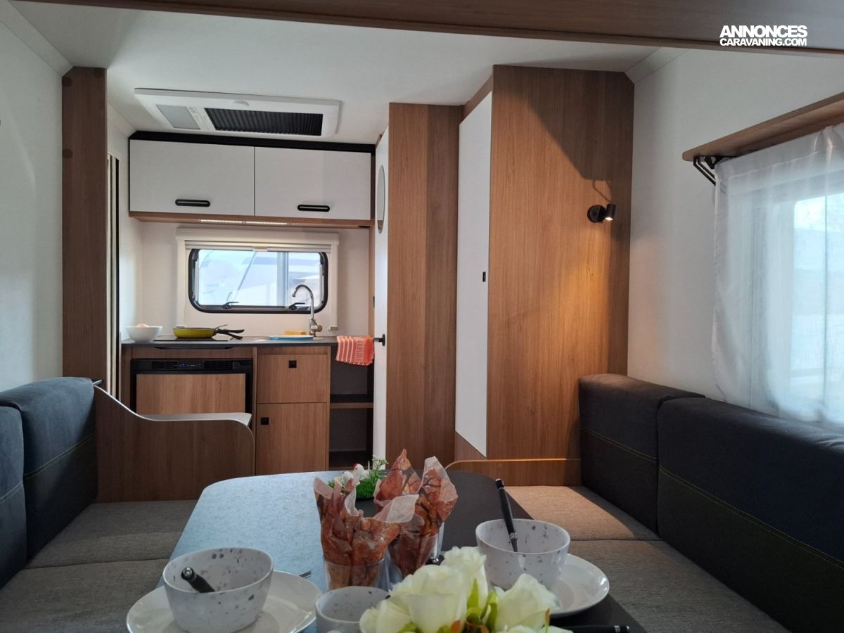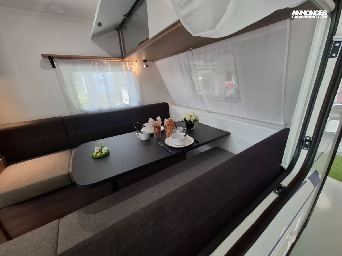 Tout nouveau modèle de Printemps 2026 : petite caravane, légère et très compacte, tout électrique, avec cuisine à l'arrière, grande dînette transformable en couchage :