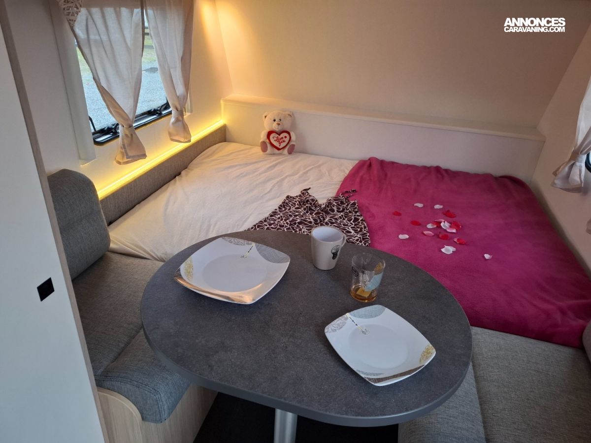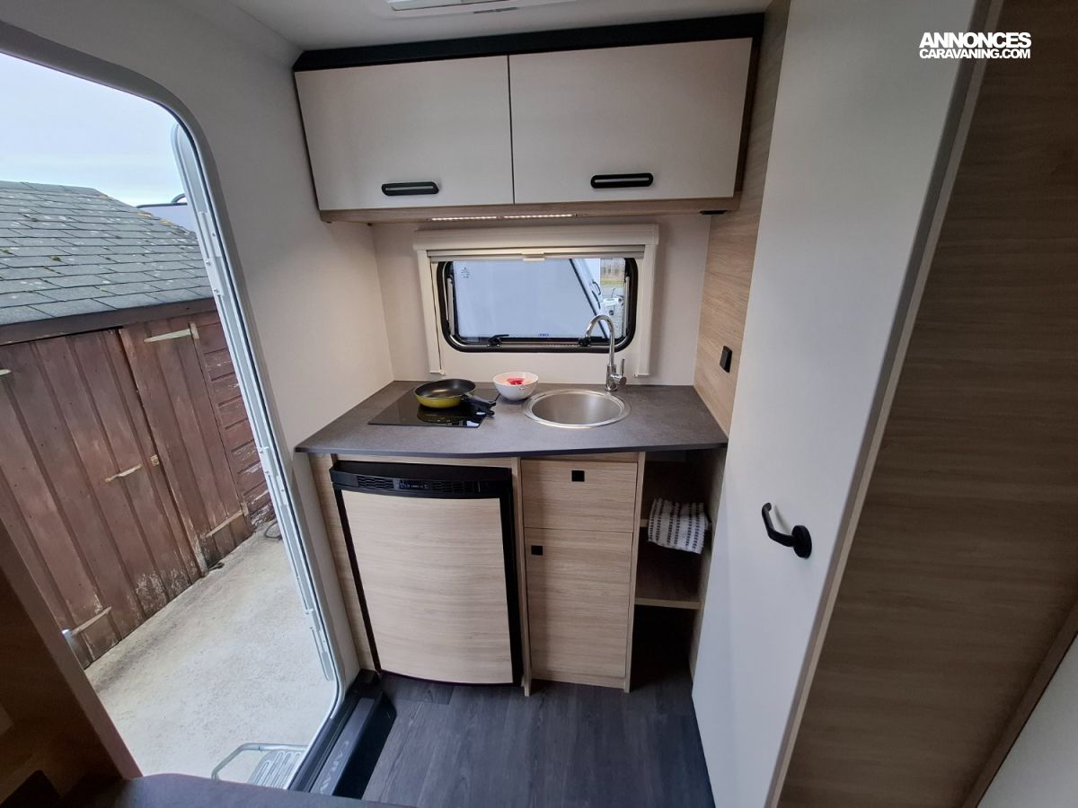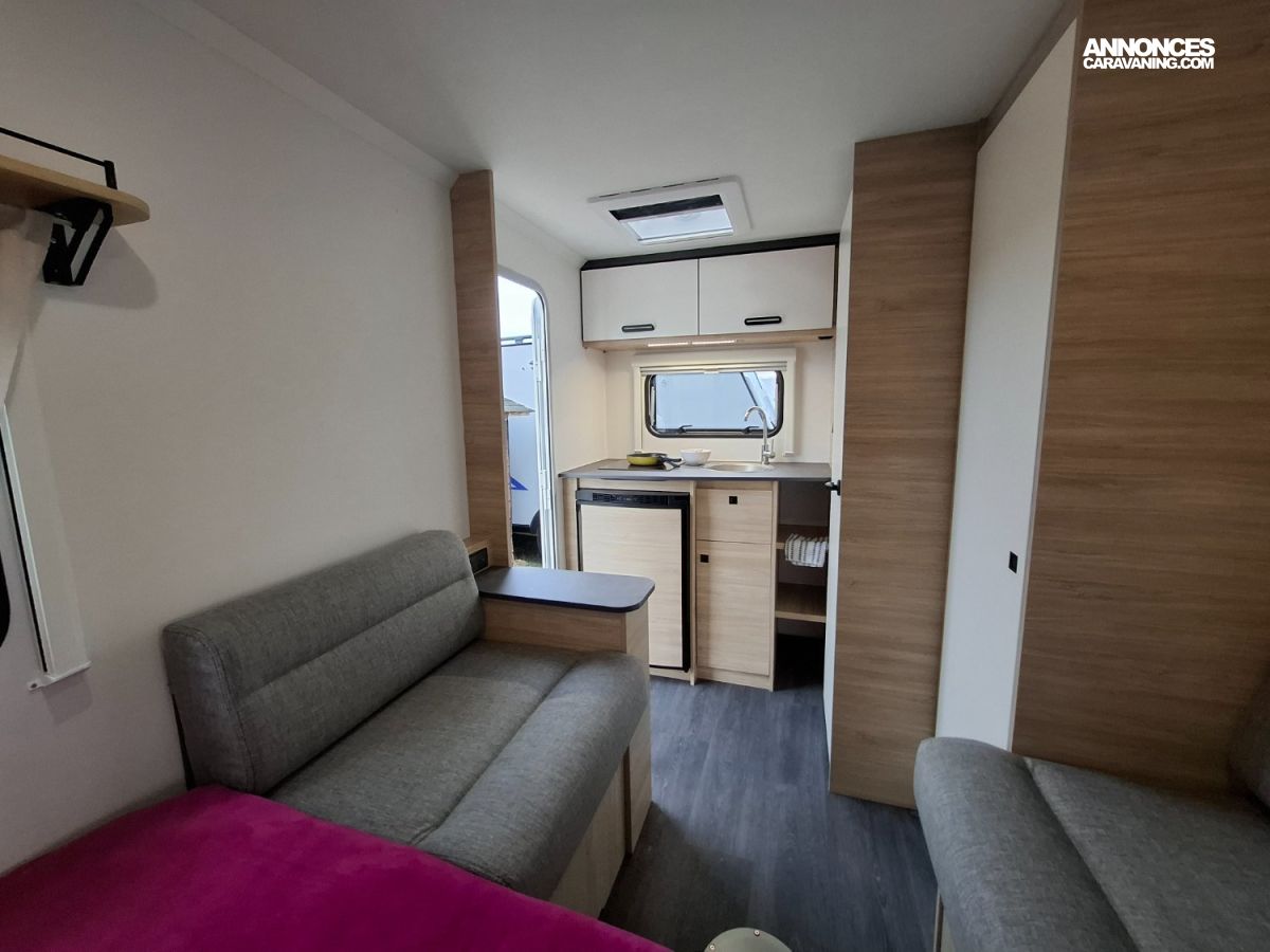 La plus petite caravane avec un couchage confortable, un cabinet de toilette et coin cuisine ! Elle est compacte et légère puisqu'elle ne pèse que 850 KG en Poids Total en Charge. Elle sera mise à disposition avec un auvent classique, ou un auvent gonflable ou un store de paroi posé (voir conditions en bas d'annonce)