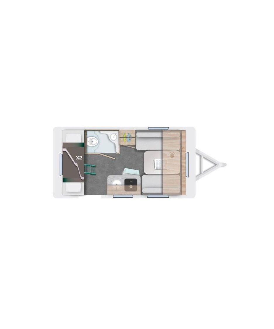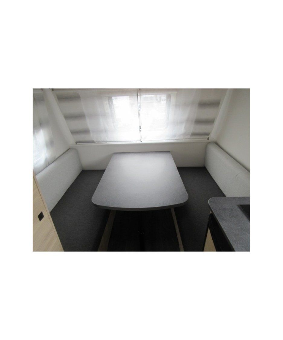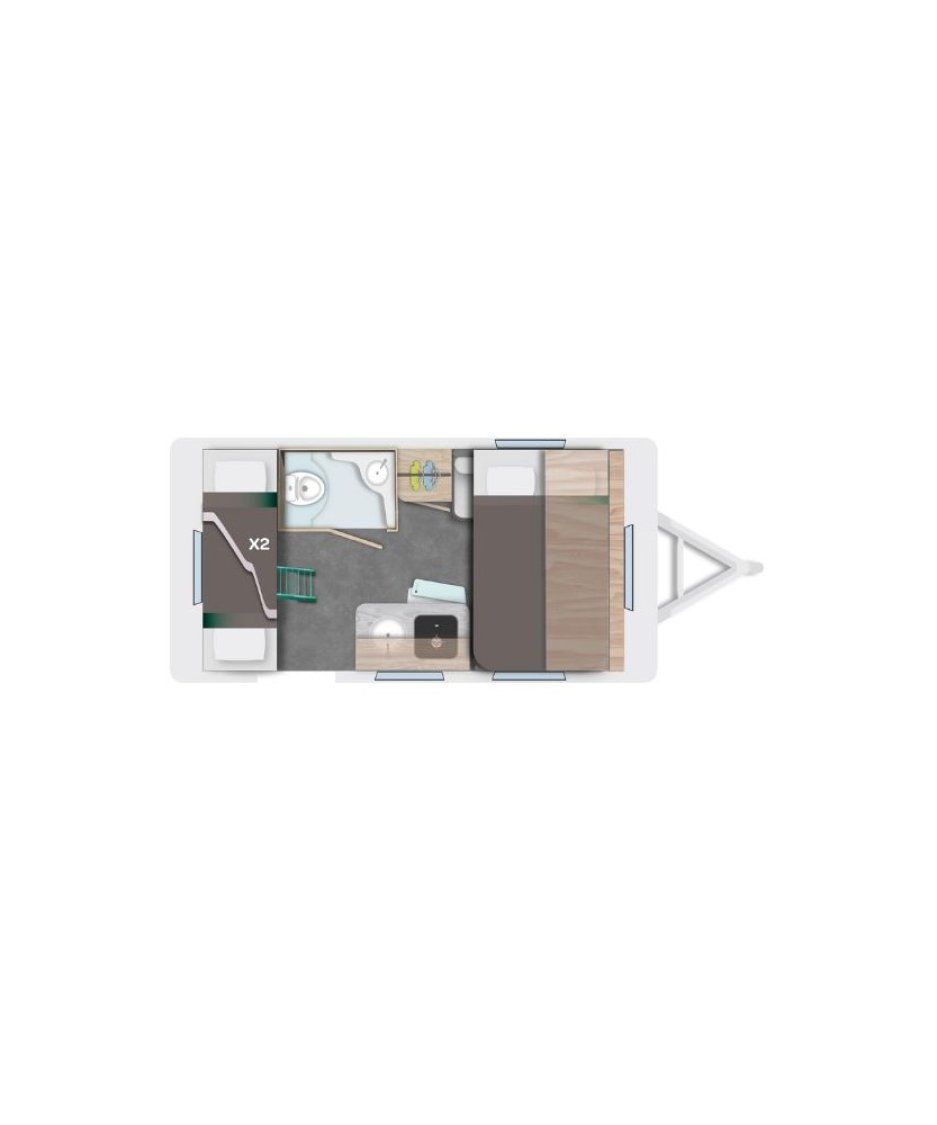 Caravane familiale 4 places affichant un PTAC de seulement 750 KG et avec des équipements 100% électriques.