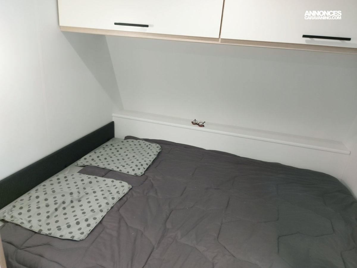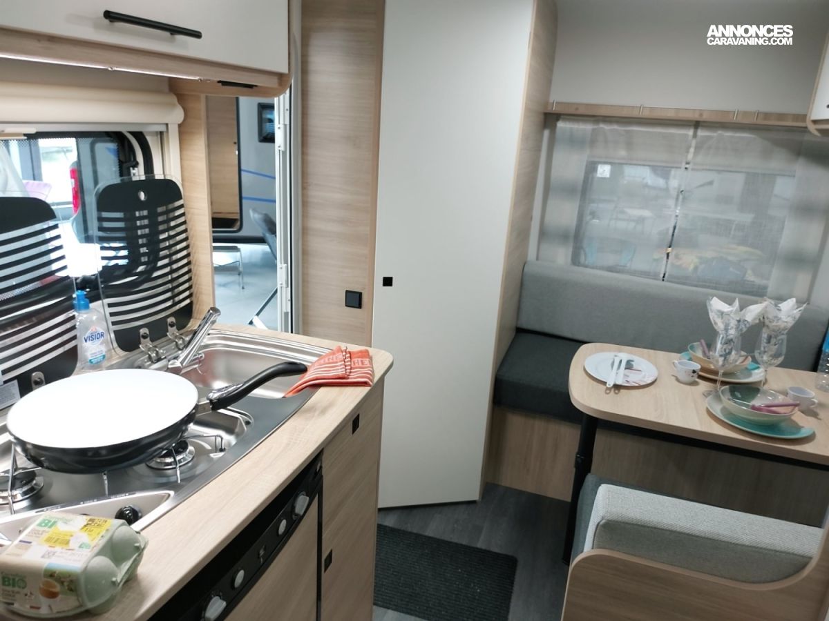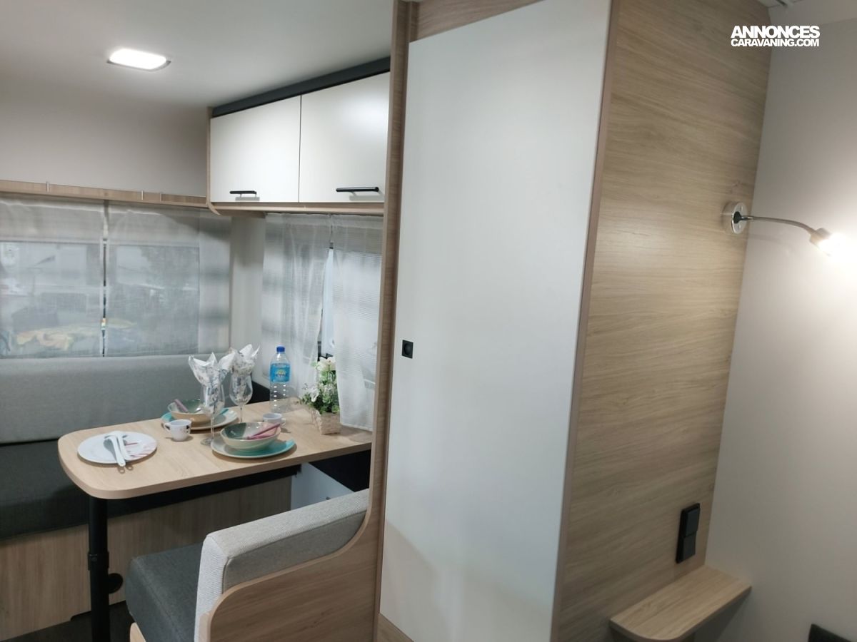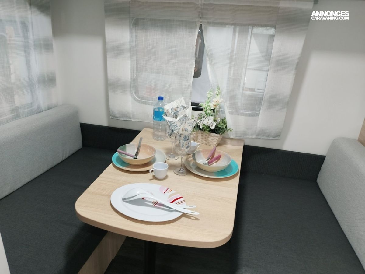 Caravane compacte, confortable et idéalement équipée pour passer de bonnes vacances : lit permanent, coin repas spacieux qui pourra être transformé en couchage complémentaire, cabinet de toilette avec WC et lavabo, coin cuisine. Nos petites caravanes partiront avec au choix un auvent classique, ou un auvent gonflable ou un store posé (voir conditions en fin d'annonce).