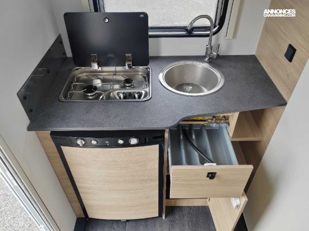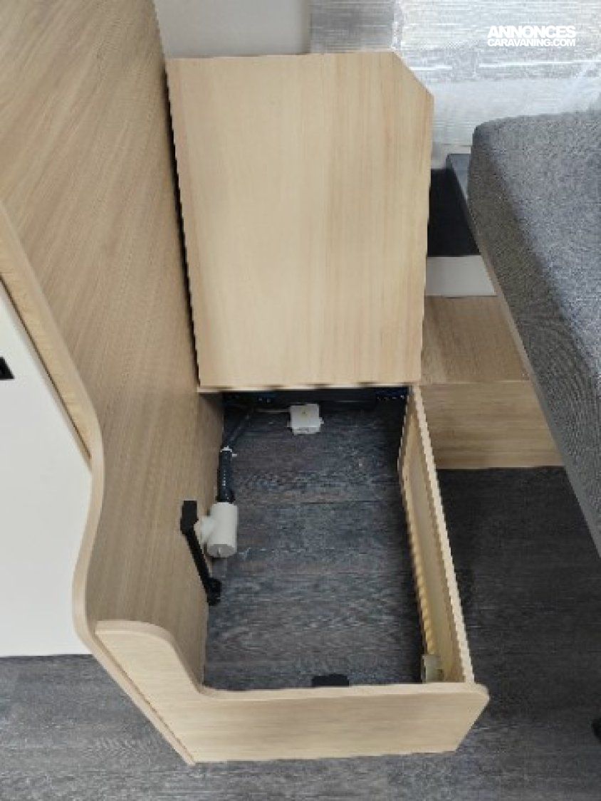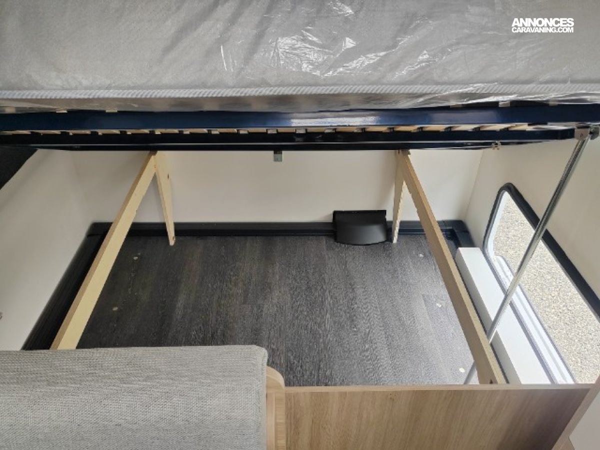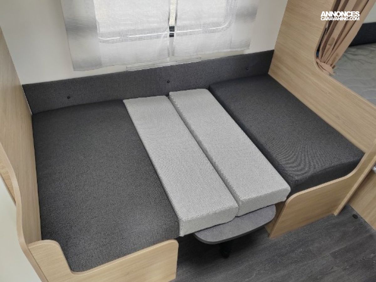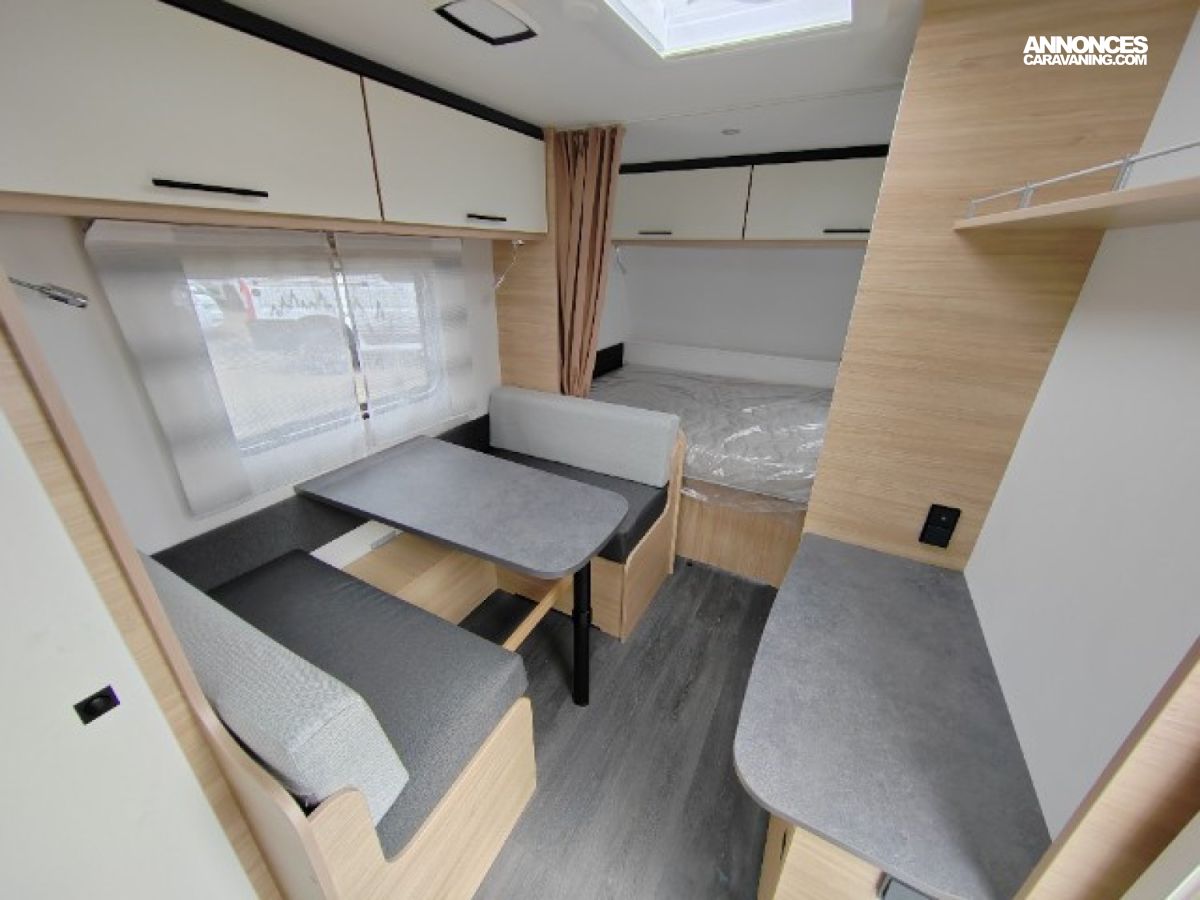 ANTILACETS AL-KO, ROUE DE SECOURS, MOVER, ECLAIRAGE EXTERIEUR, TOLE LISSE, TRAPPE EXTERIEURE LATERALE, FRIGO TRIMIXTE, EVIER, PLAQUE DE CUISSON GAZ, SPOTS LECTURE LED X4, BAC DE PROPRETE, MOUSTIQUAIRE DE PORTE, WC, DINETTE TRANSFORMABLE EN COUCHAGE, GRANDE PENDERIE, LANTERNEAU PANORAMIQUE, AMORTISSEURS