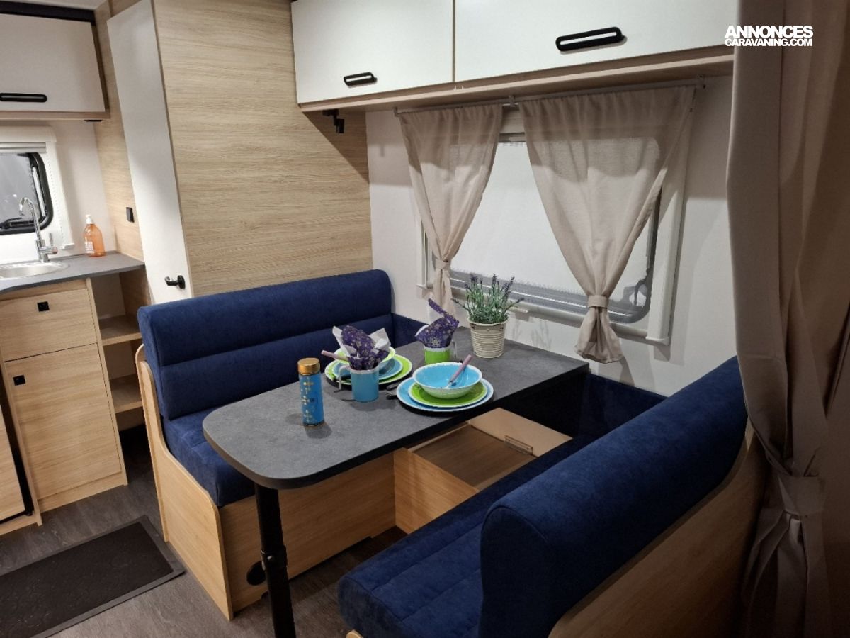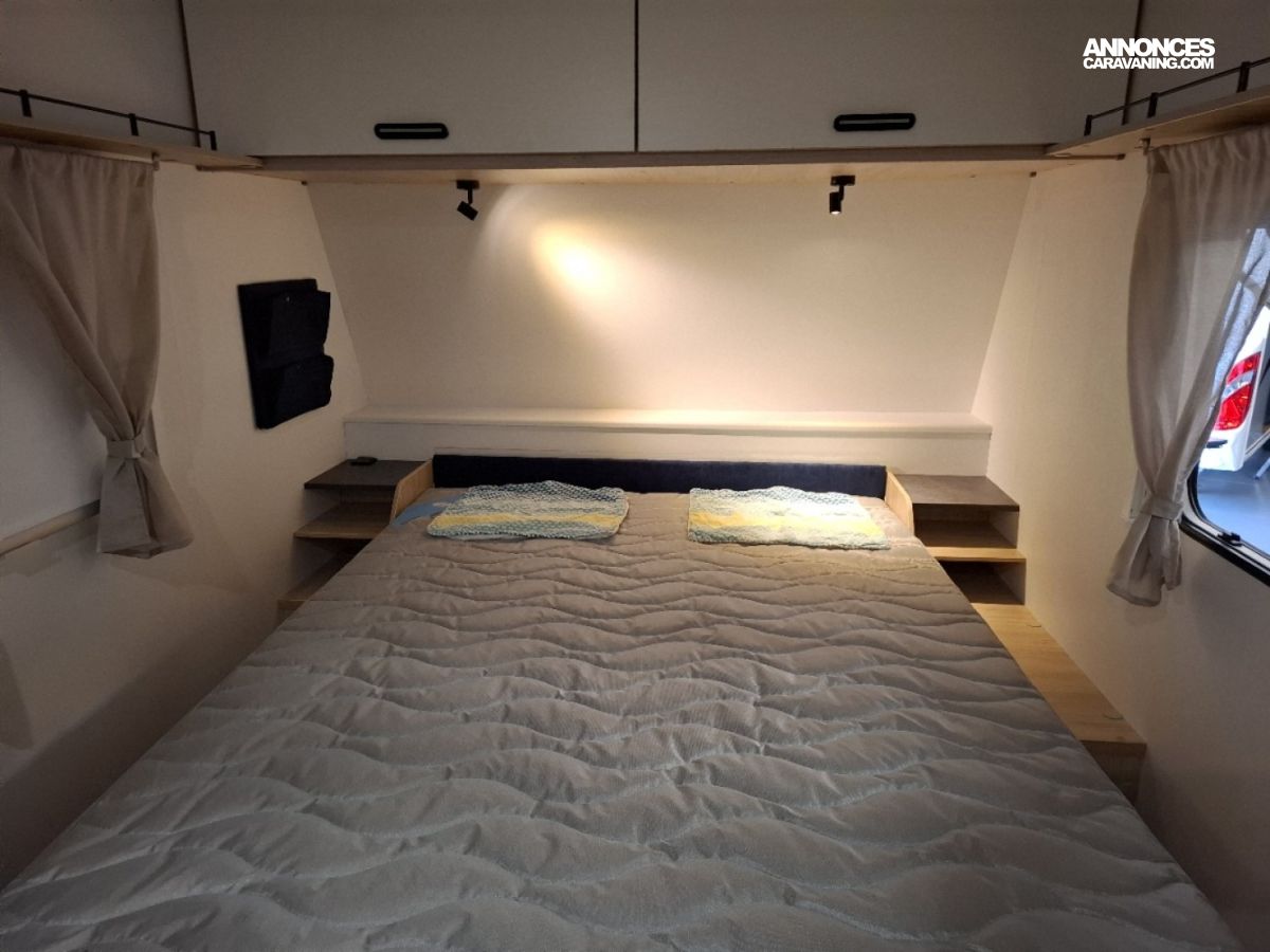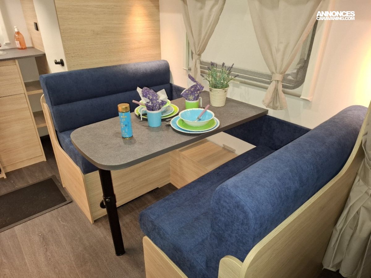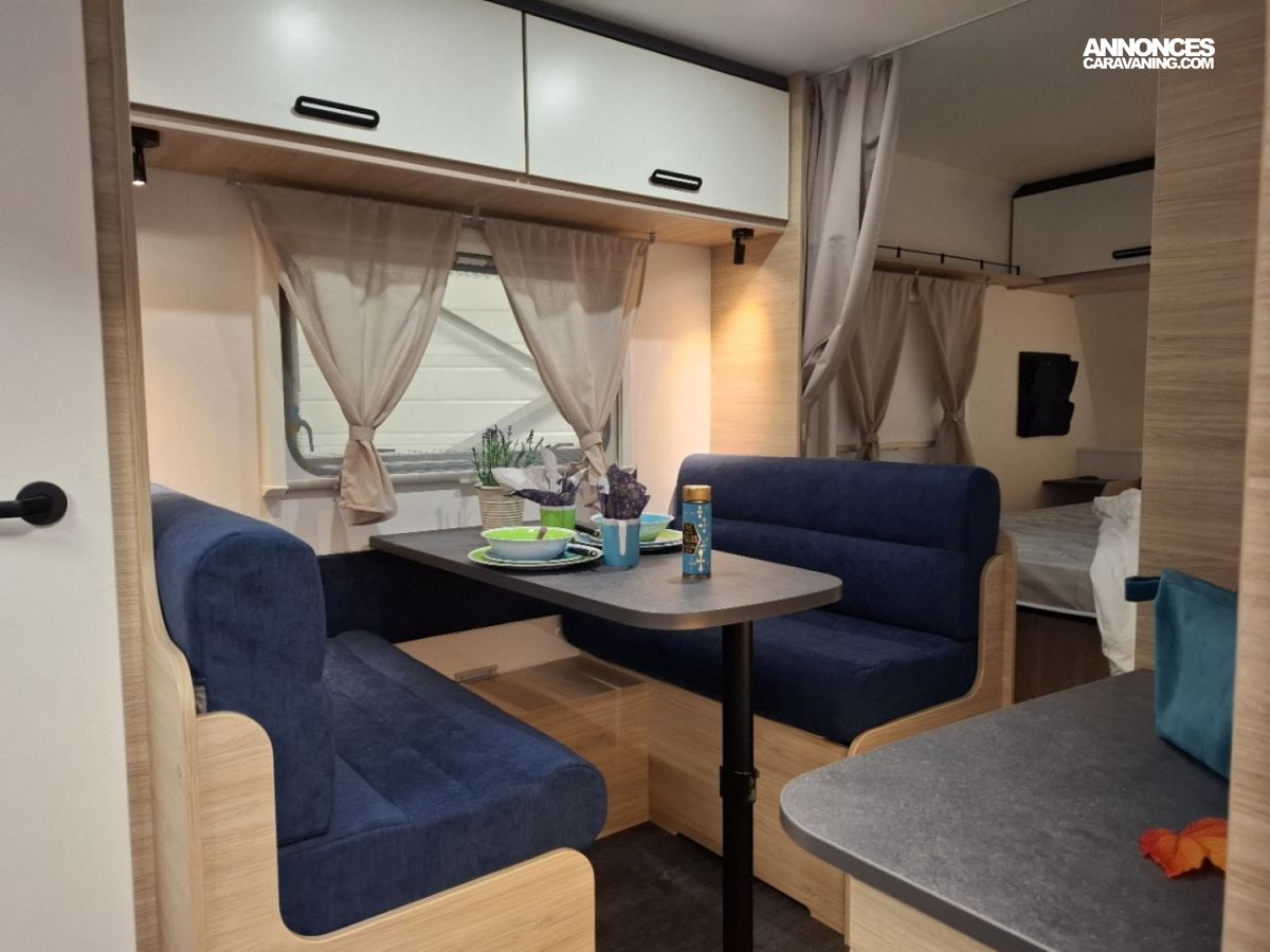 Malgré ses 2,10 m de large, elle dispose d'un lit central. Elle dispose d'un excellent niveau d'équipements et sera mise à disposition avec au choix, un auvent classique ou un auvent gonflable ou un store de paroi posé (voir conditions en fin d'annonce)