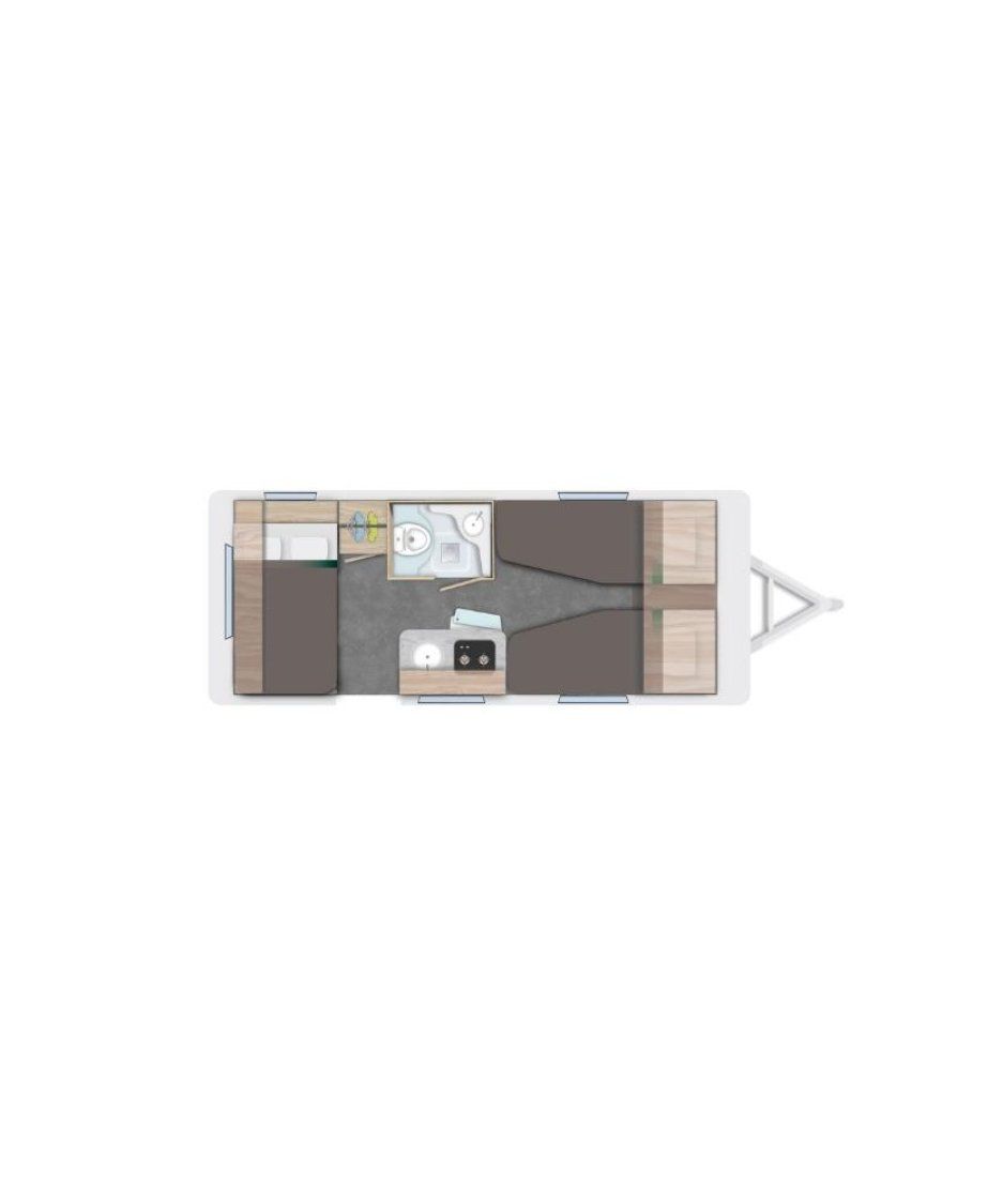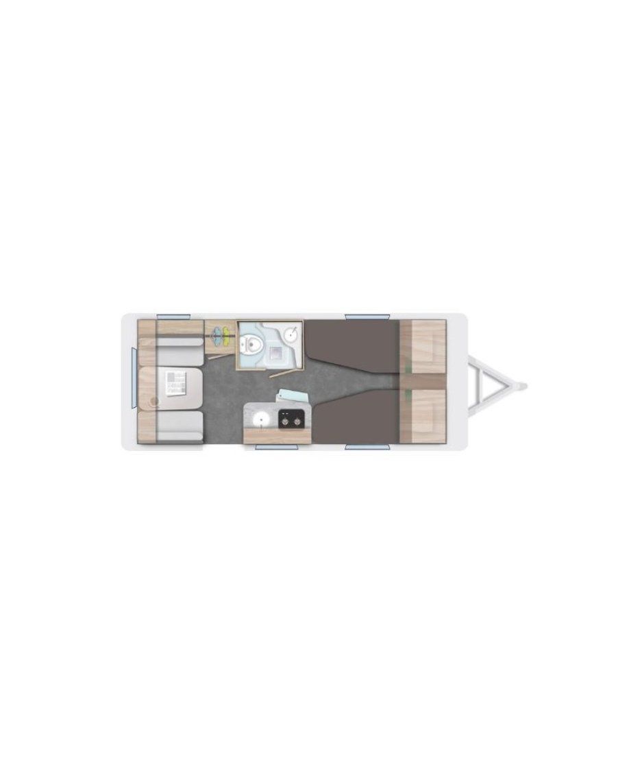 Deux véritables lits jumeaux à l'avant, modulables en un grand couchage king size, une spacieuse dinette convertible, une cuisine entièrement équipée et une vraie salle d'eau. Cette caravane réunit tous les atouts.