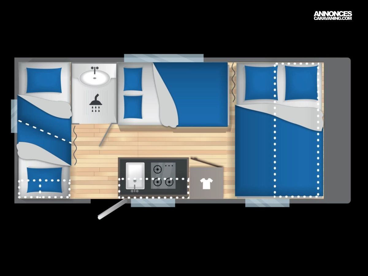 5.27m x 2.3m - Nbre de Couchages