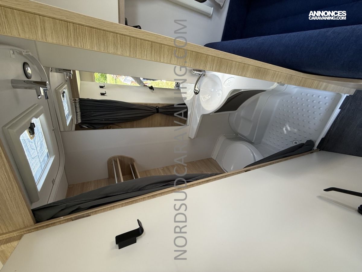 Conçue pour les familles, cette caravane compacte, confortable, légère et facile à tracter, est dotée d’un maxi garage, parfait pour les amoureux de cyclisme.