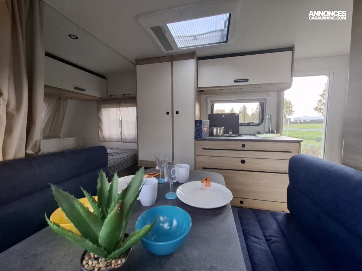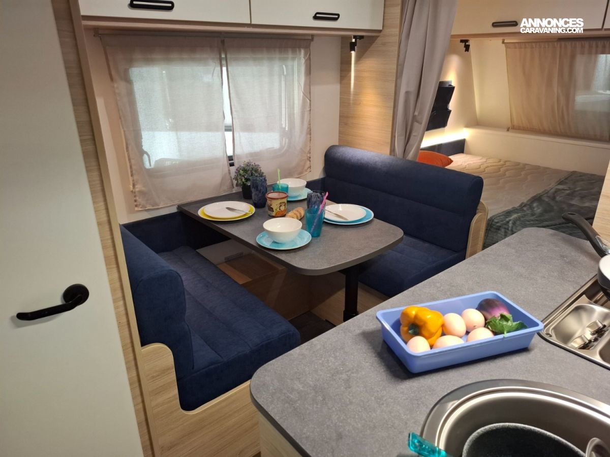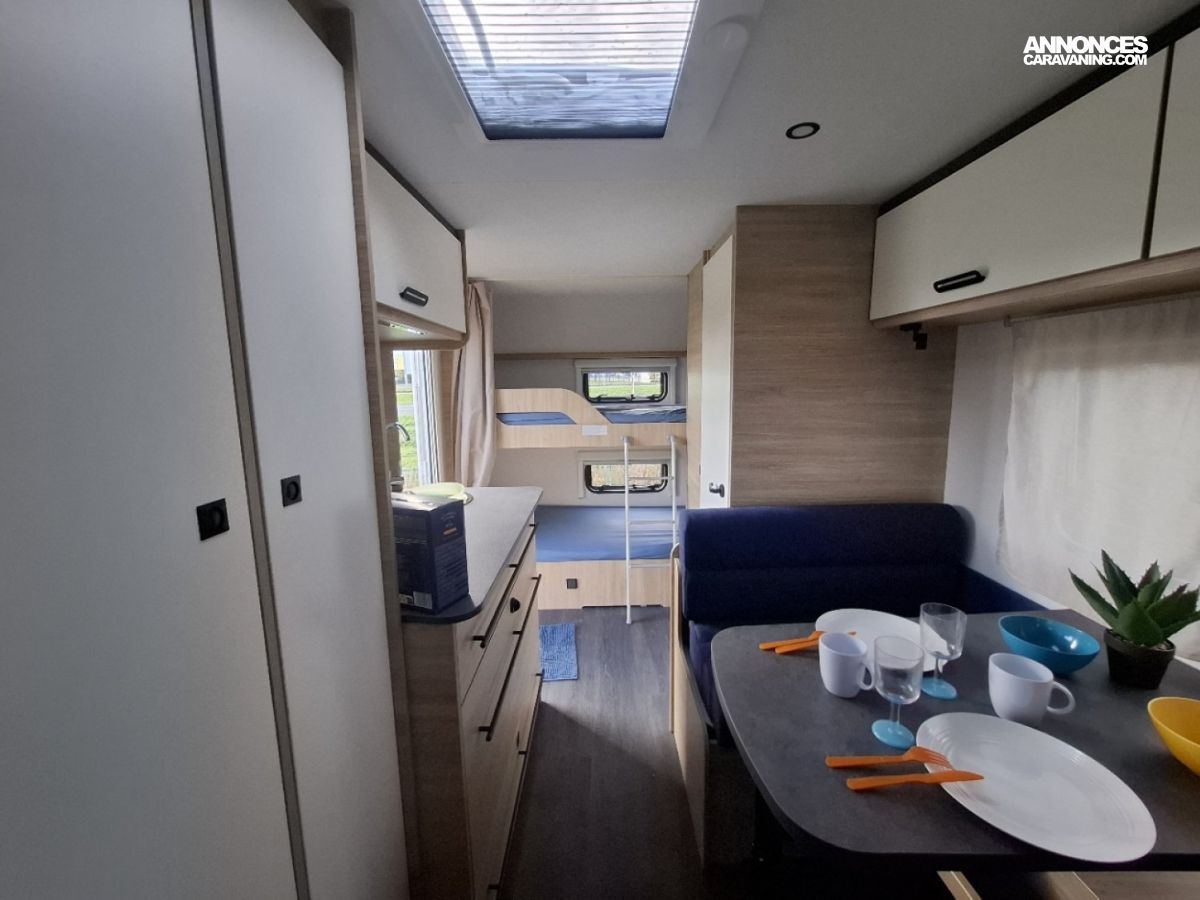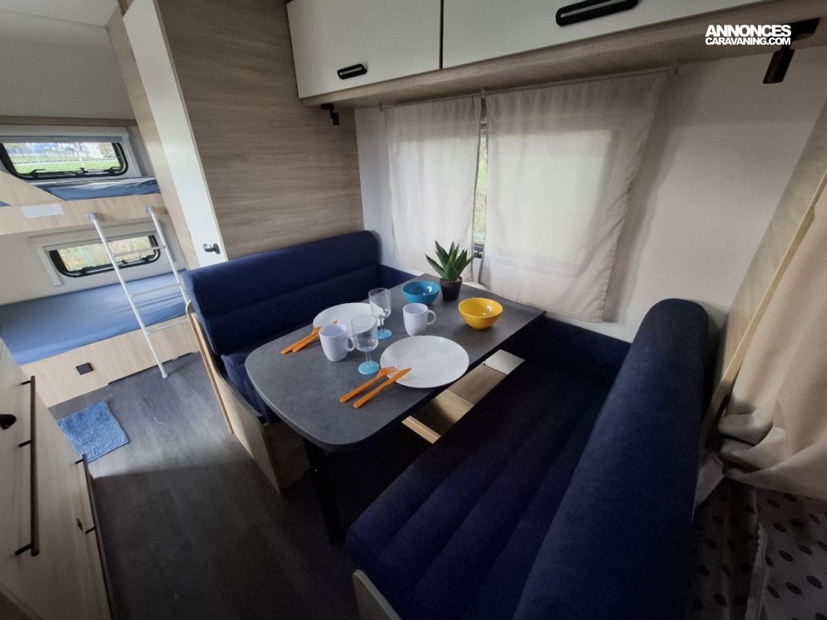 Une caravane familiale à l'implantation classique qui vous séduira par son excellent niveau d'équipements et son rapport QUALITE/PRIX maîtrisé : un grand réfrigérateur, des lits superposés confortables pour les enfants et un cabinet de toilette spacieux. Pour la mise à disposition, elle sera équipée d'un auvent classique ou d'un auvent gonflable ou d'un store posé (voir le détail des produits proposés en bas d'annonce) ; c'est vous qui choisissez !