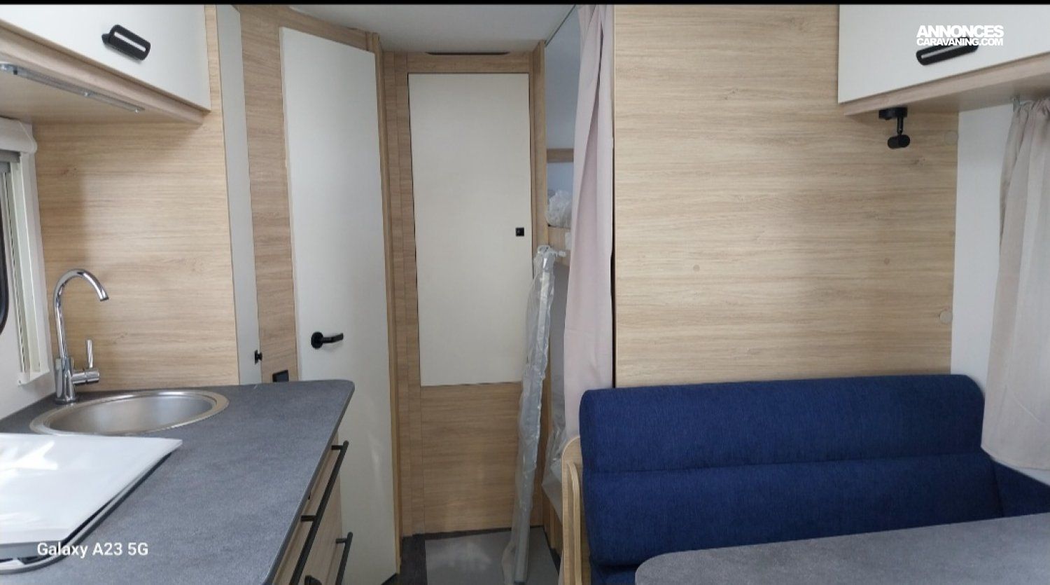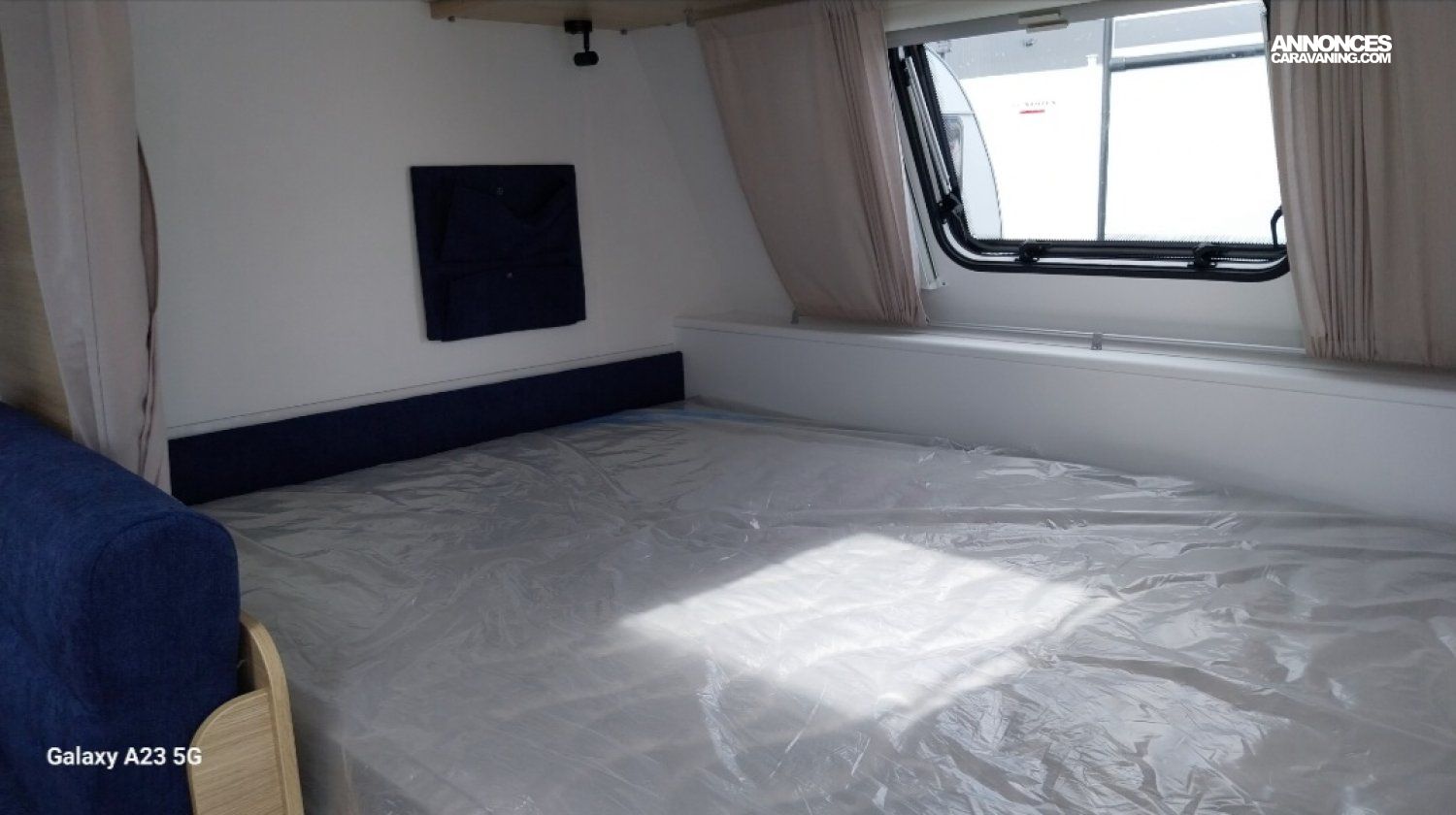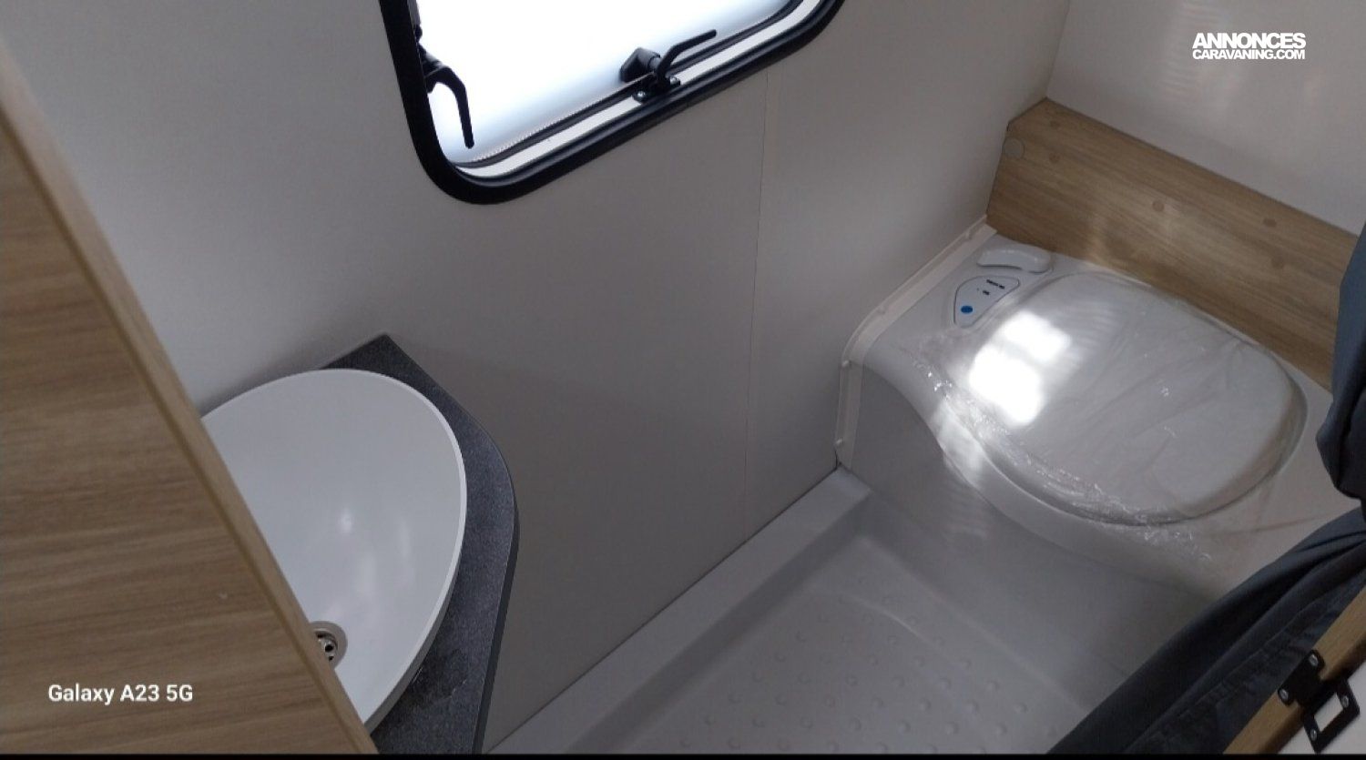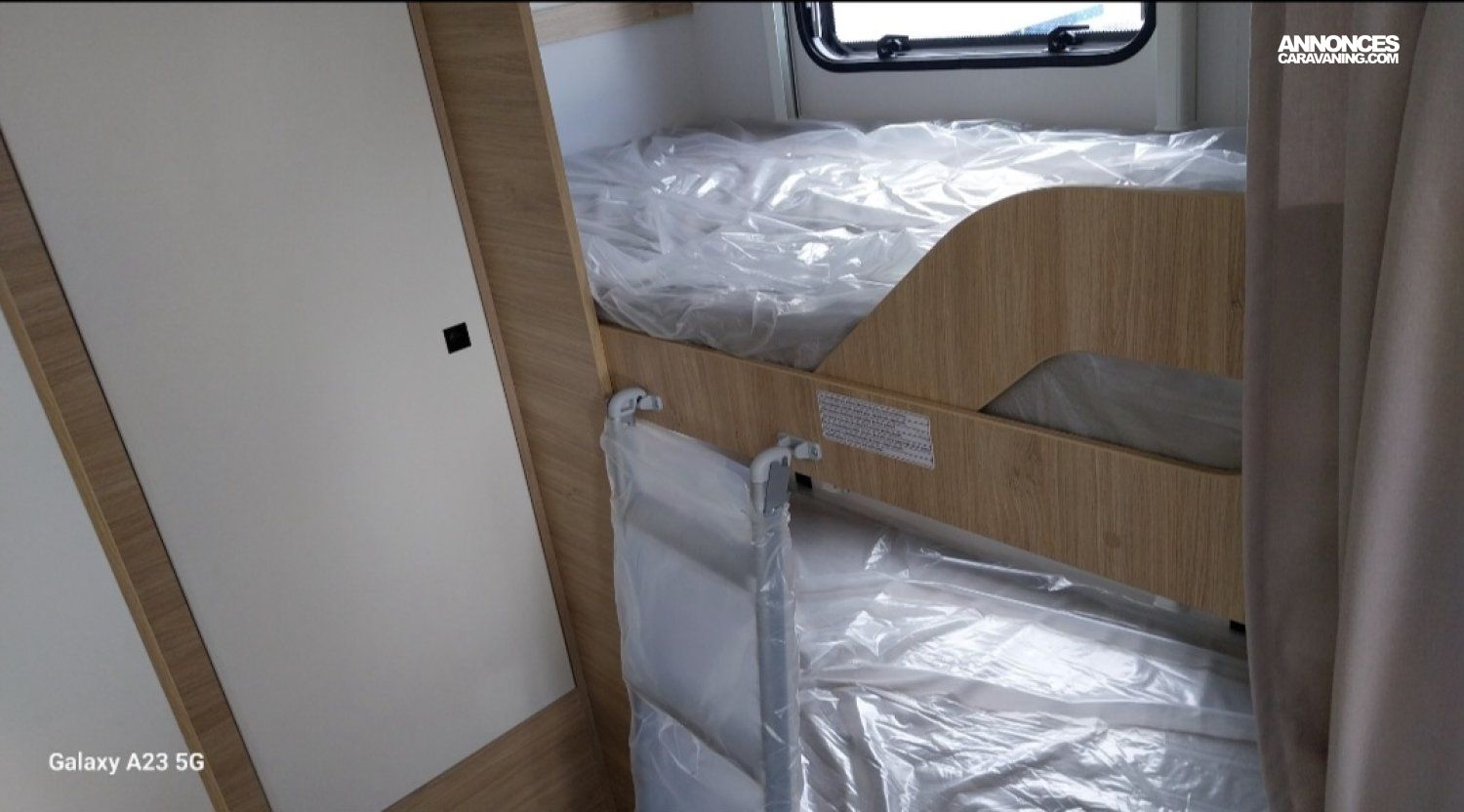 Store combi occultant + moustiquaire, Parois latérales polyester, Prises 230 V / USB, Rail auvent, Regroupement des eaux usées, Réchaud 2 feux, Toit polyester, Vérrins rallongés avant, WC Cassette, Réfrigérateur à compression 150 L, Soute à vélos, Lanterneau SDB, Bac de propreté, Baies ouvrantes double vitrage, Eclaireur exterieur LED, Enjoliveurs de roue
