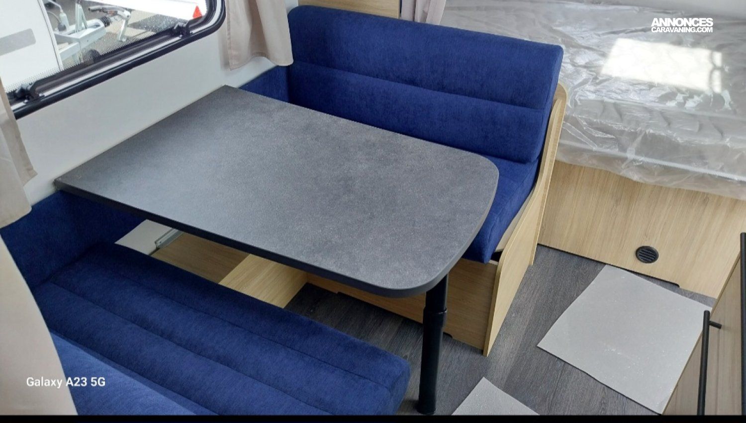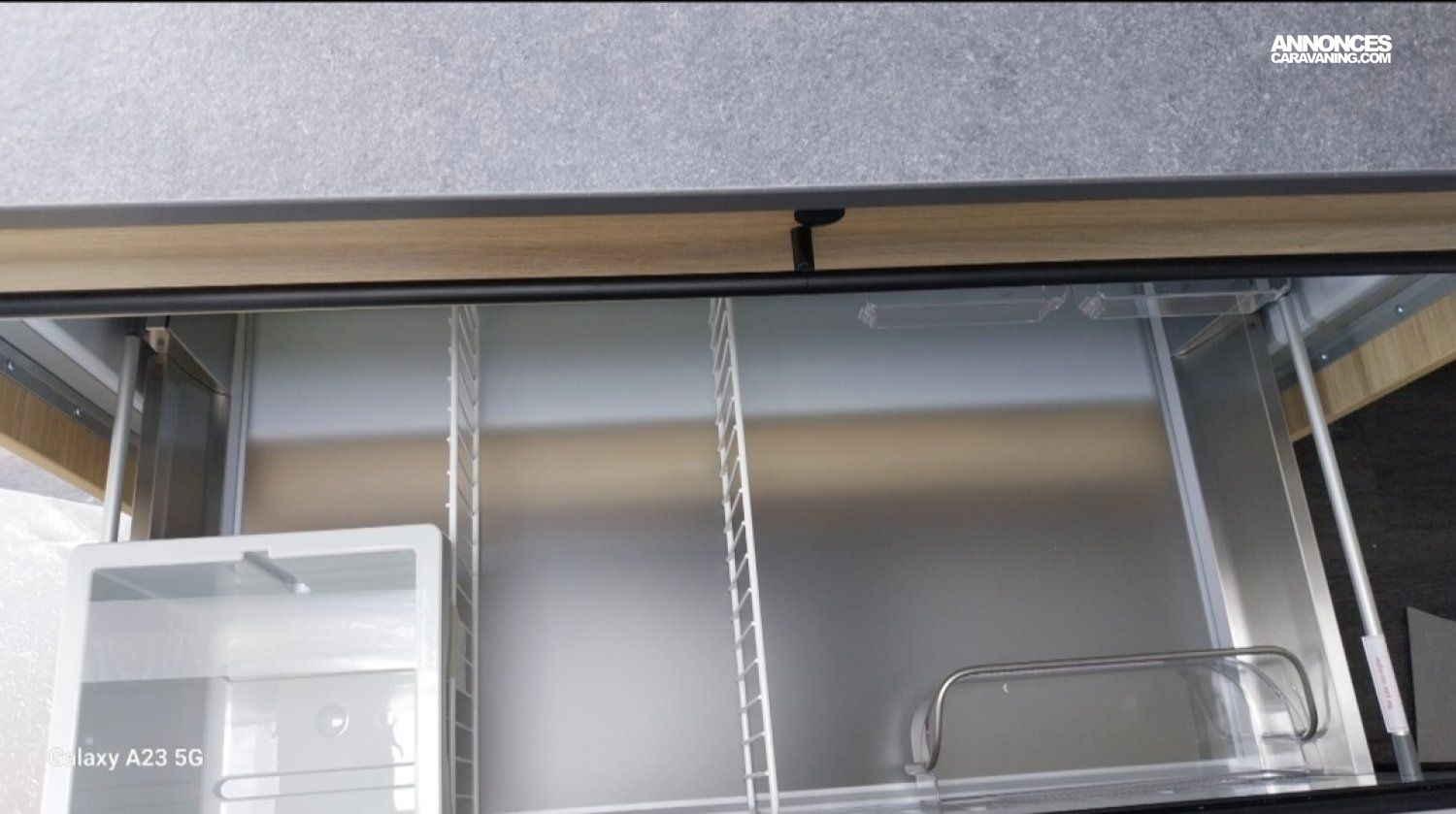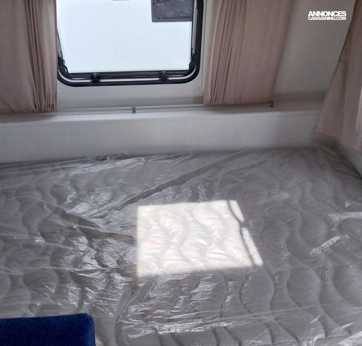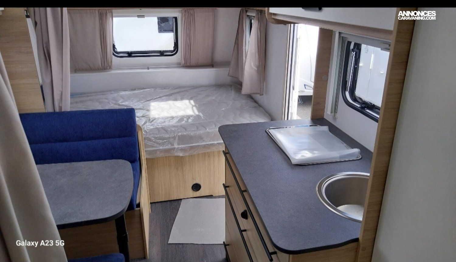 Store combi occultant + moustiquaire, Parois latérales polyester, Prises 230 V / USB, Rail auvent, Regroupement des eaux usées, Réchaud 2 feux, Toit polyester, Vérrins rallongés avant, WC Cassette, Réfrigérateur à compression 150 L, Soute à vélos, Lanterneau SDB, Bac de propreté, Baies ouvrantes double vitrage, Eclaireur exterieur LED, Enjoliveurs de roue