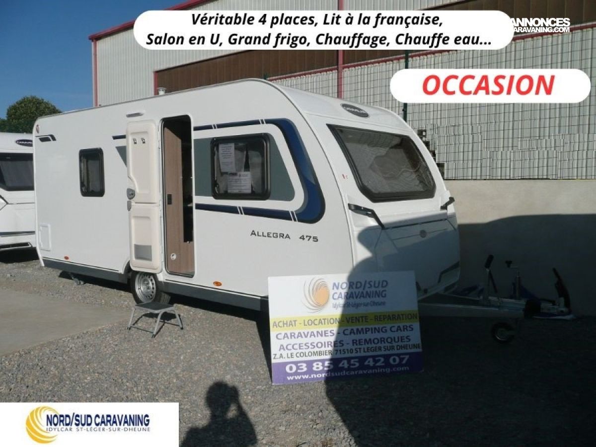 Magnifique caravane d’occasion Caravelair Allegra 475 de 2014, très bien entretenue, elle est très agréable à vivre avec son salon en U qui peut accueillir jusqu’à 6 personnes et transformable en couchage pour 2 personnes. Très bel espace nuit avec son lit à la française très confortable et ses nombreux rangements. Vous vous sentirez comme à la maison. Cuisine spacieuse équipée d’un réfrigérateur congélateur 150 L à tiroir, d’un réchaud 3 feux gaz, d’un évier cuve inox et de placards de pavillon. Elle a également un joli espace salle de bain avec WC à cassette et une véritable douche.