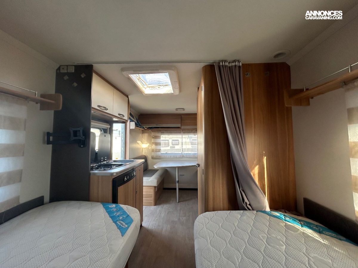 Caravane idéale pour un couple ou une petite famille souhaitant voyager avec un véhicule léger et facile à tracter.