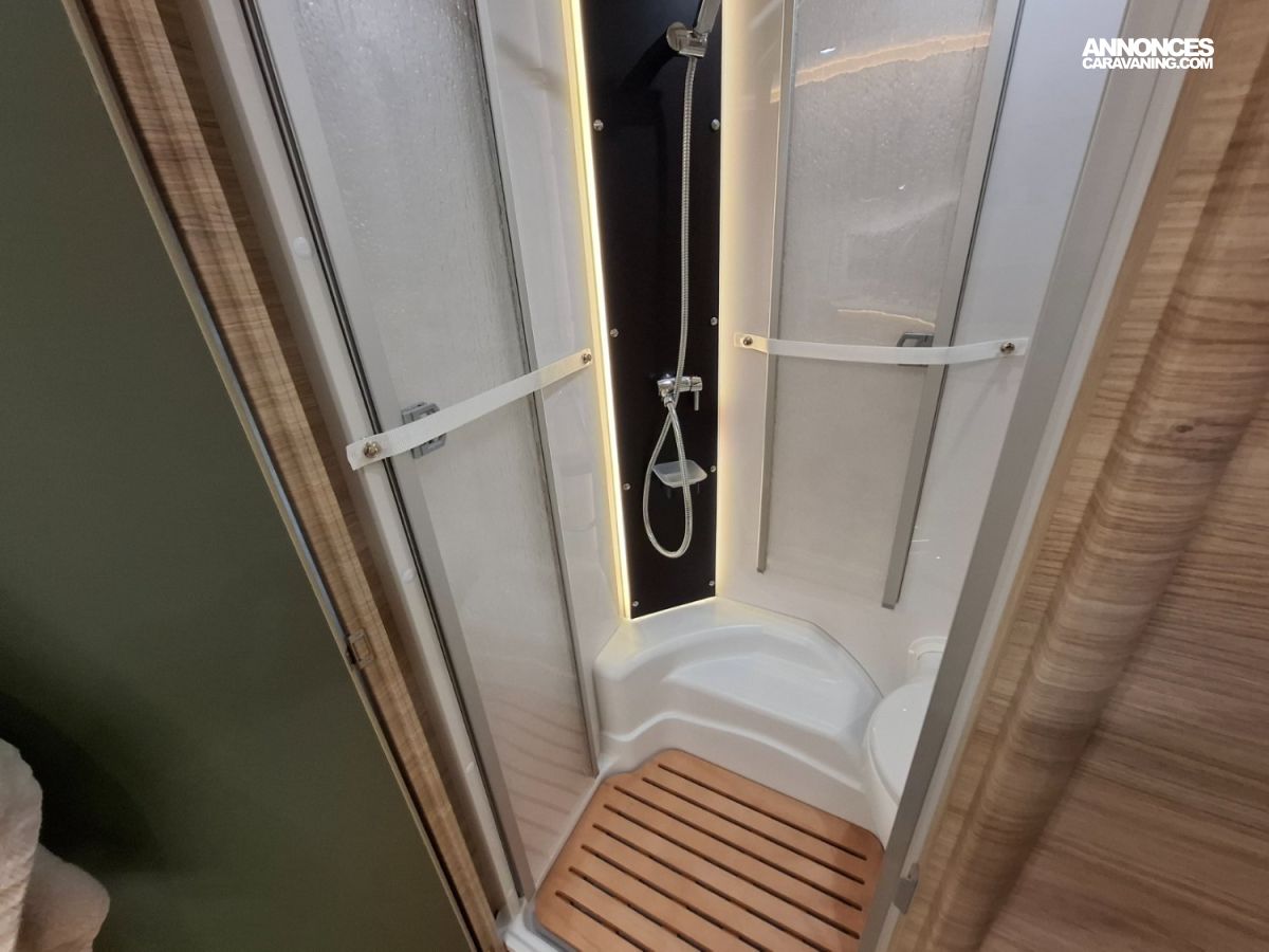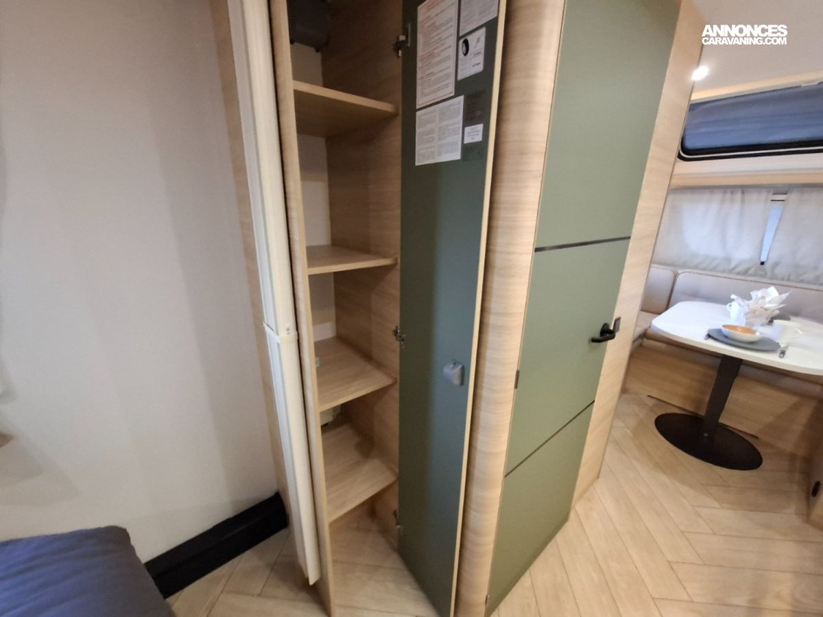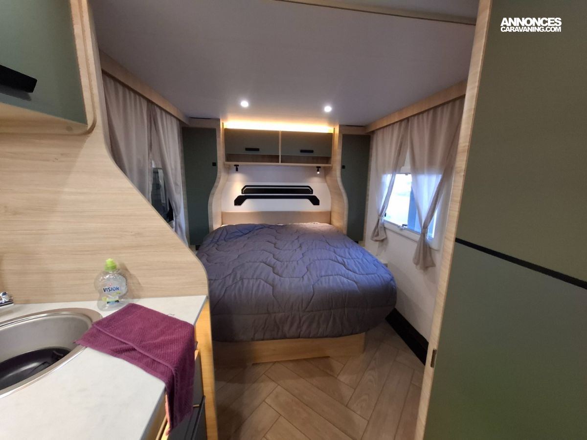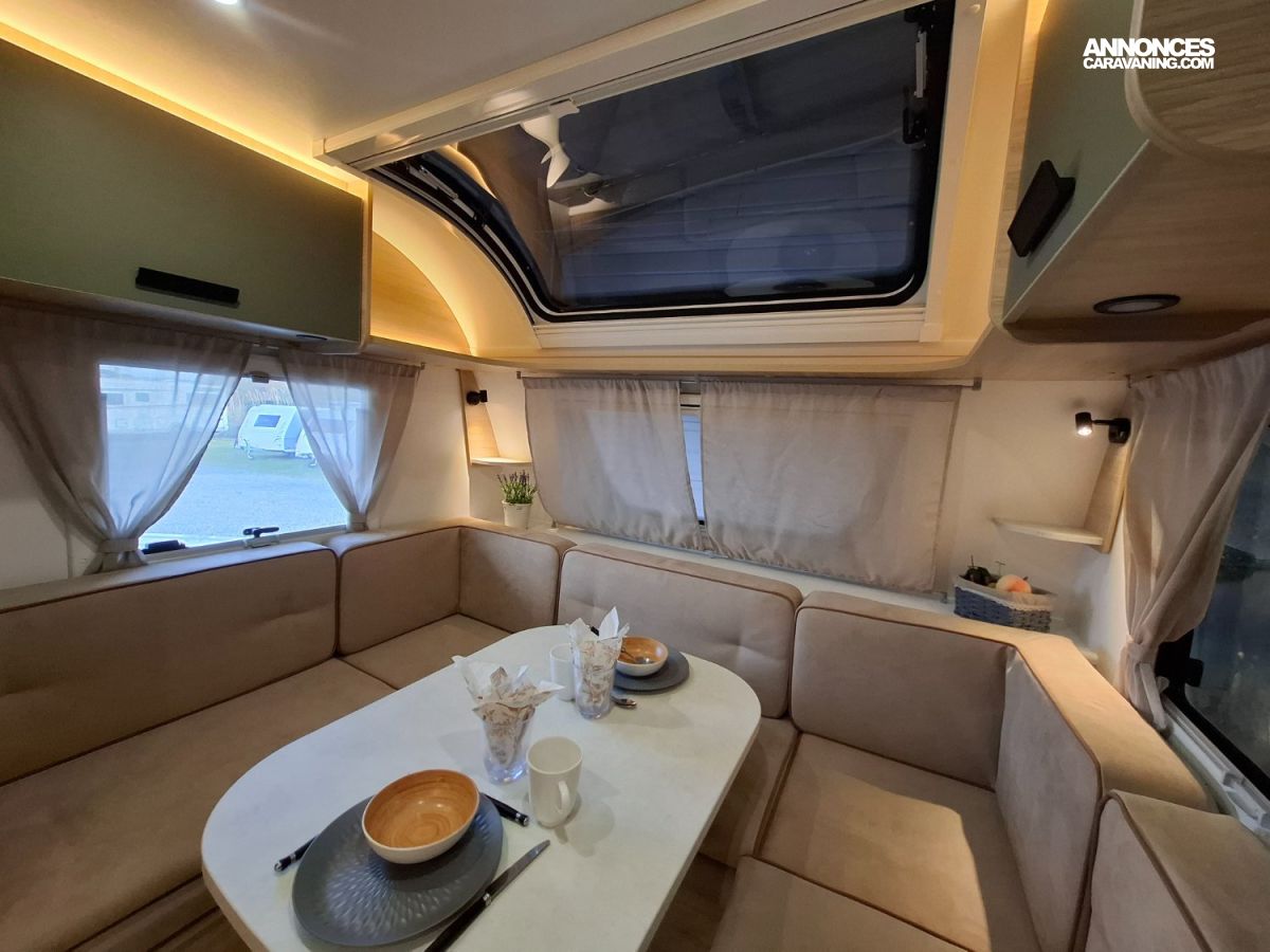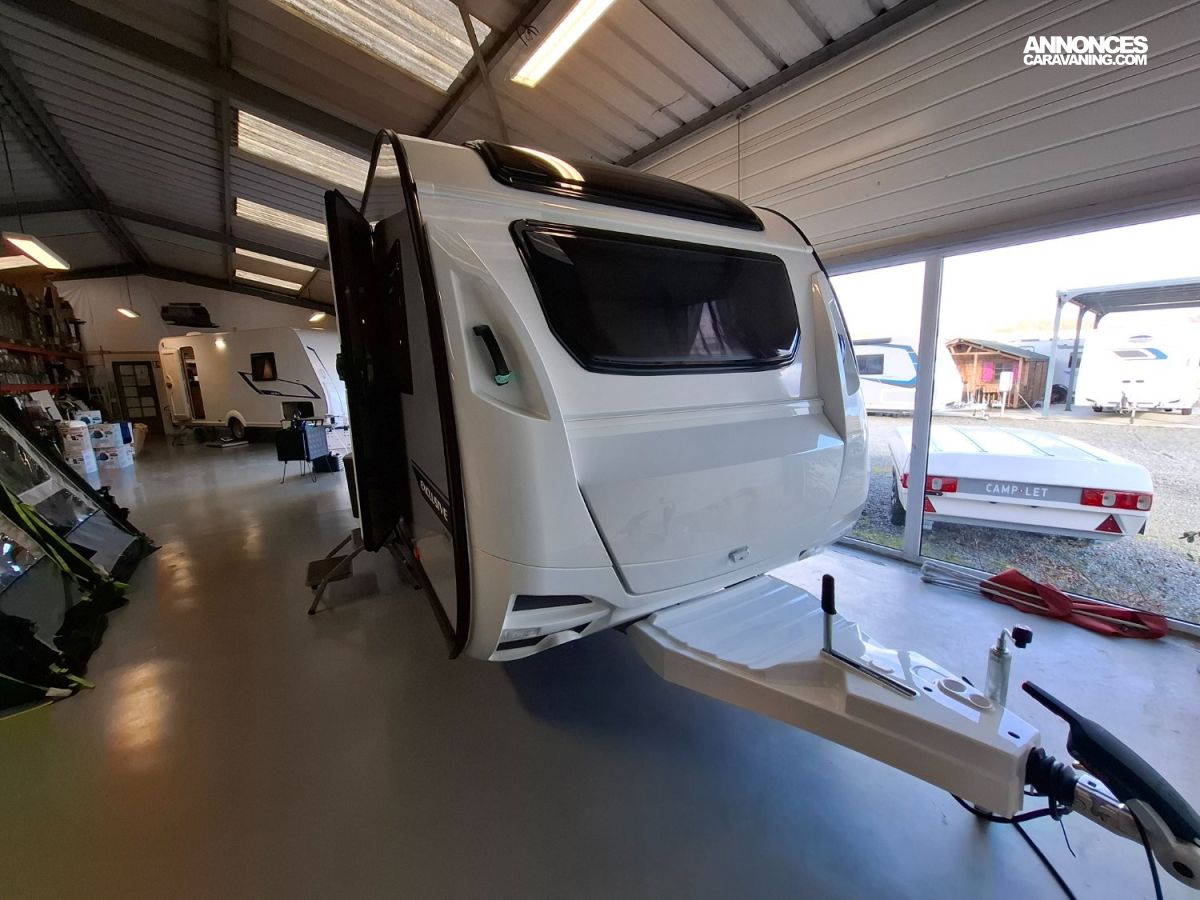 Intérieur élégant et design extérieur différent, pour cette belle caravane avec lit central, grand salon en U, douche et cabinet de toilette spacieux et innovant. Le dôme de toit au dessus du salon vous apportera une belle luminosité. L'EXCLUSIVE LINE dispose d'un excellent niveau d'équipements : grand réfrigérateur à compression, chauffage et eau chaude, géolocalisation. Elle sera mise à disposition avec un auvent classique, ou un auvent gonflable ou un store de toit posé. C'est vous qui choisissez !