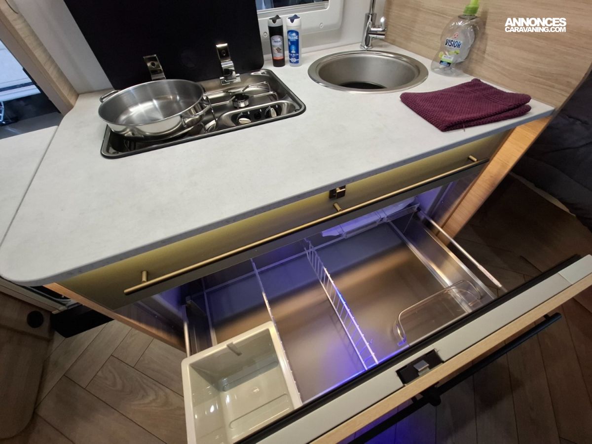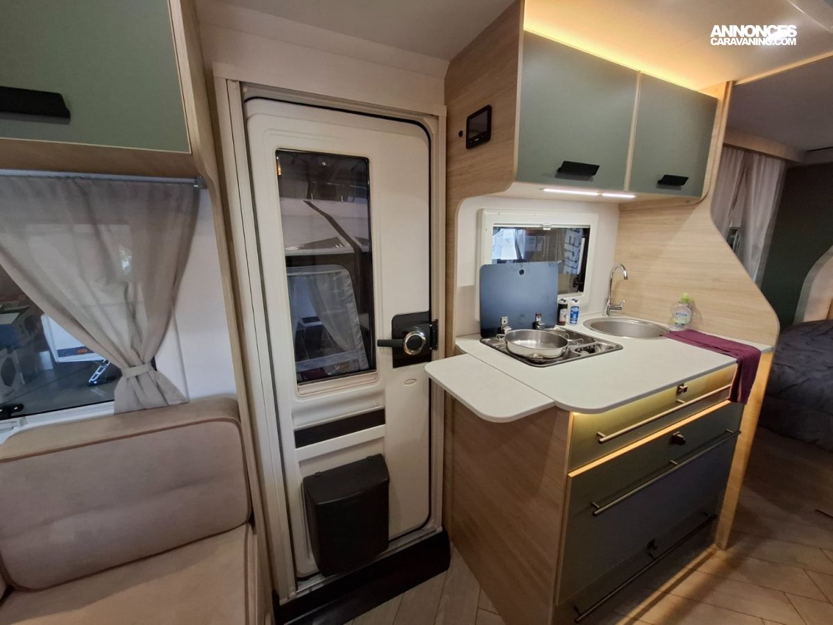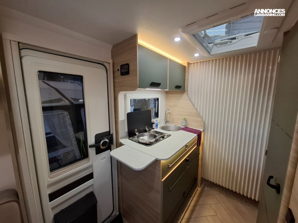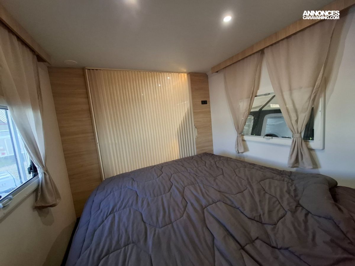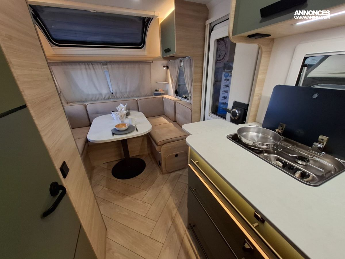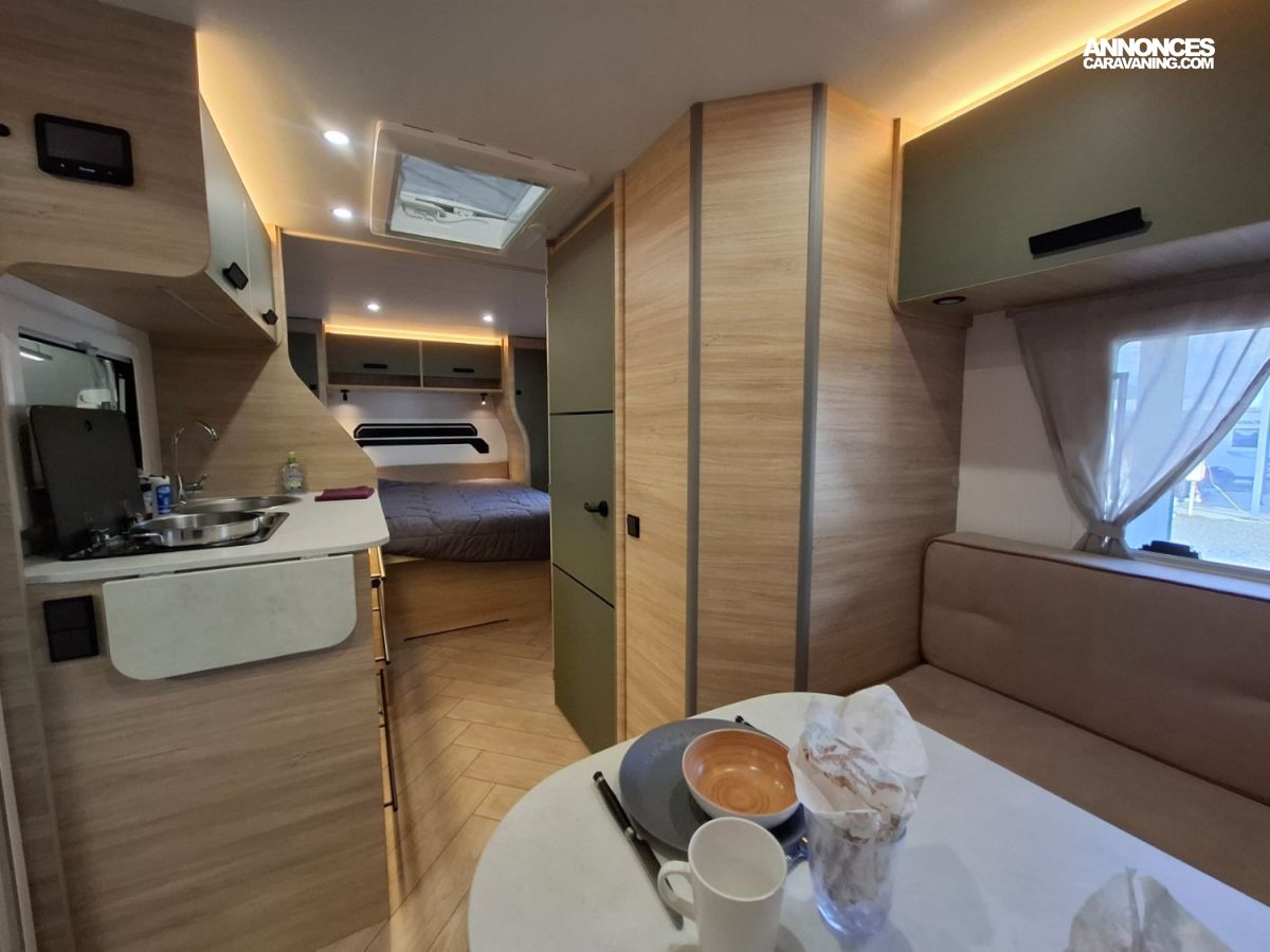 Intérieur élégant et design extérieur différent, pour cette belle caravane avec lit central, grand salon en U, douche et cabinet de toilette spacieux et innovant. Le dôme de toit au dessus du salon vous apportera une belle luminosité. L'EXCLUSIVE LINE dispose d'un excellent niveau d'équipements : grand réfrigérateur à compression, chauffage et eau chaude, géolocalisation. Elle sera mise à disposition avec un auvent classique, ou un auvent gonflable ou un store de toit posé. C'est vous qui choisissez !