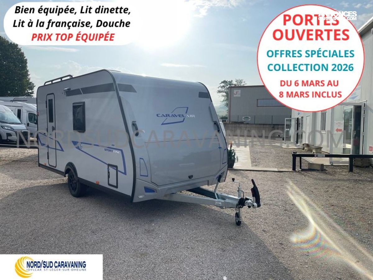 La caravane rigide CARAVELAIR 410 Sport Line est équipée d’un confortable lit de 198 cm à la française et de nombreux rangements : lingère, étagères, penderie, et range-bouteille, cette caravane est sans égal.