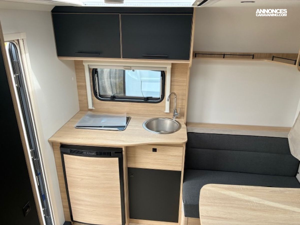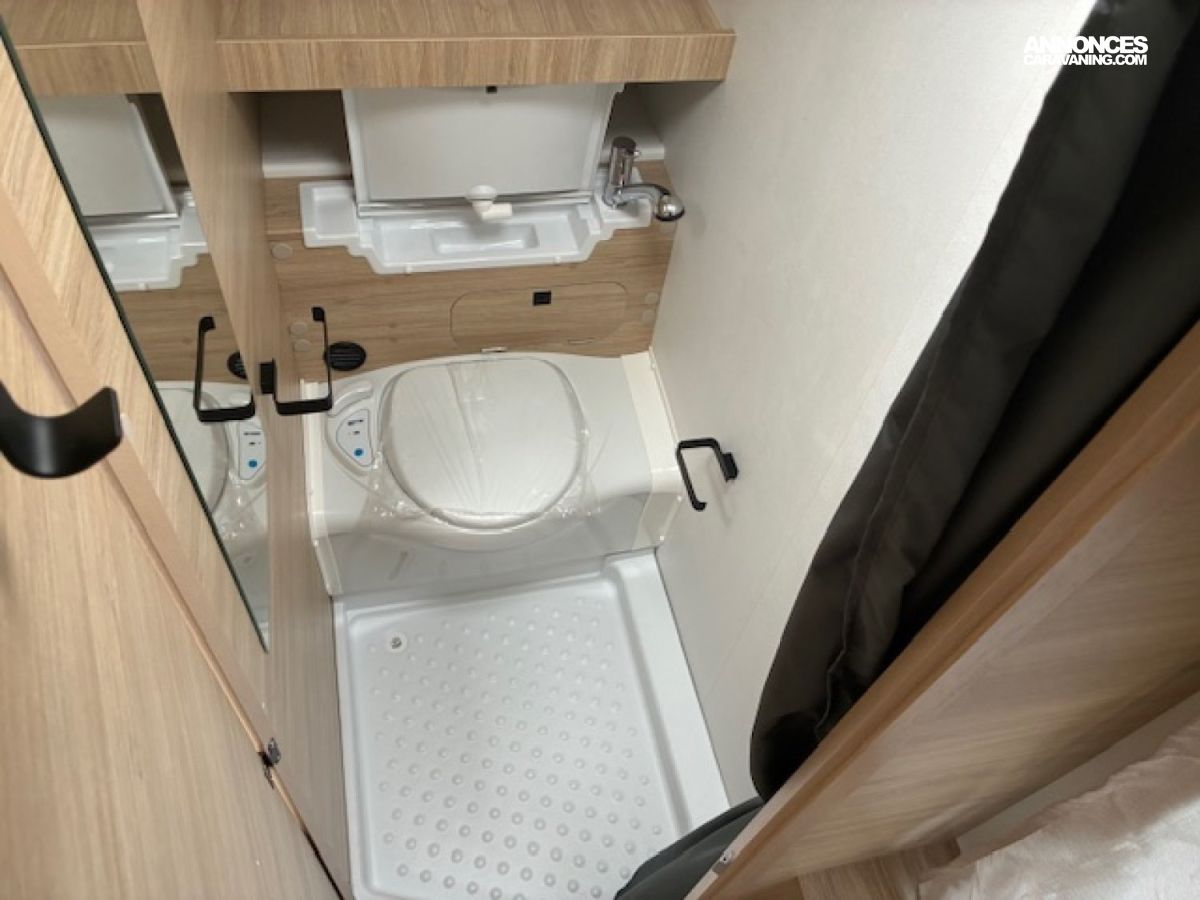 Chauffage Truma Gaz, Air pulsé, Trappe laterale, Chauffe eau, Soute à velos, Lits à la française, Douche, Roue de secours, Lanterneau panoramique, Porte moustiquaire, Vérins renforcés, Anti lacets, Amortisseurs