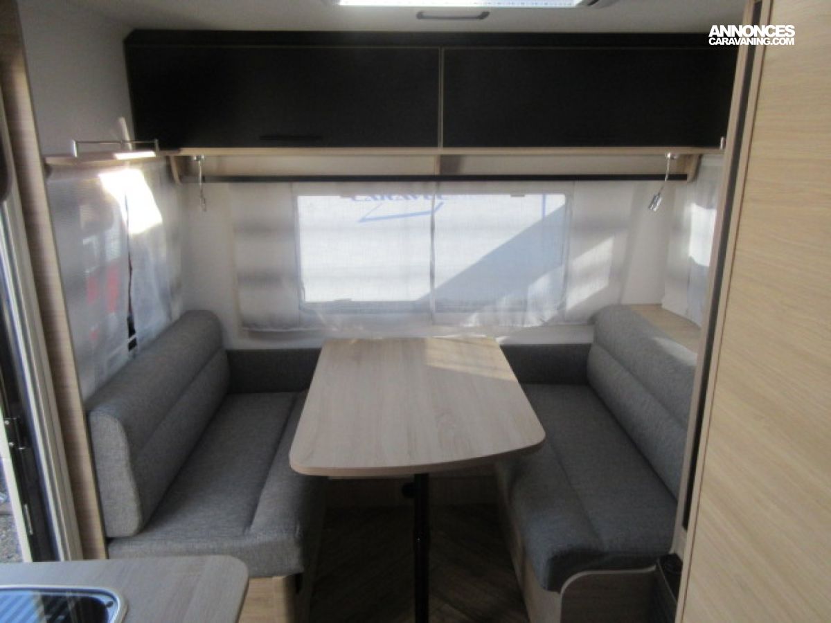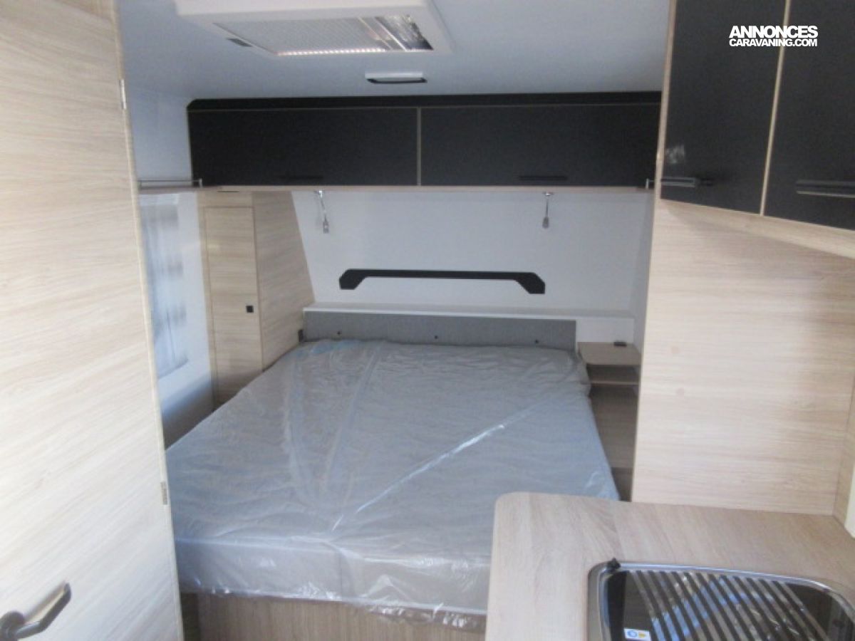 Chauffage Truma 3004, Dimensions couchage : 150 x 198 cm, Dimensions couchage central : 119 / 108 x 192 cm, Réfrigérateur à compression 150 L XL freeze, Combiné réchaud 3 feux et cuve évier inox avec couvercle en verre, WC à cassette électrique