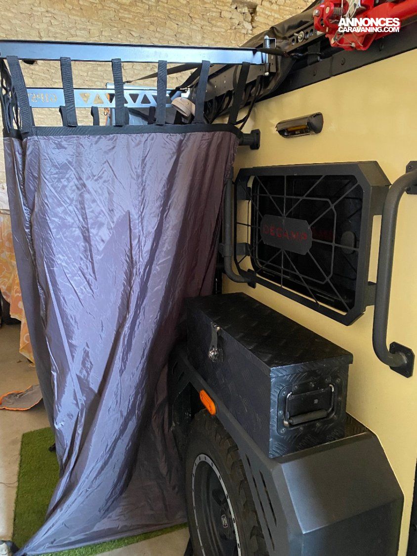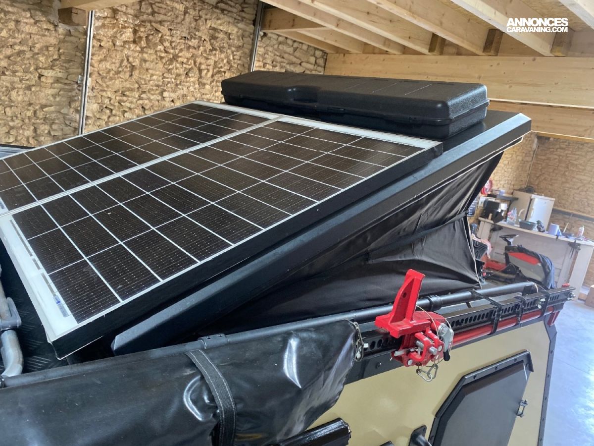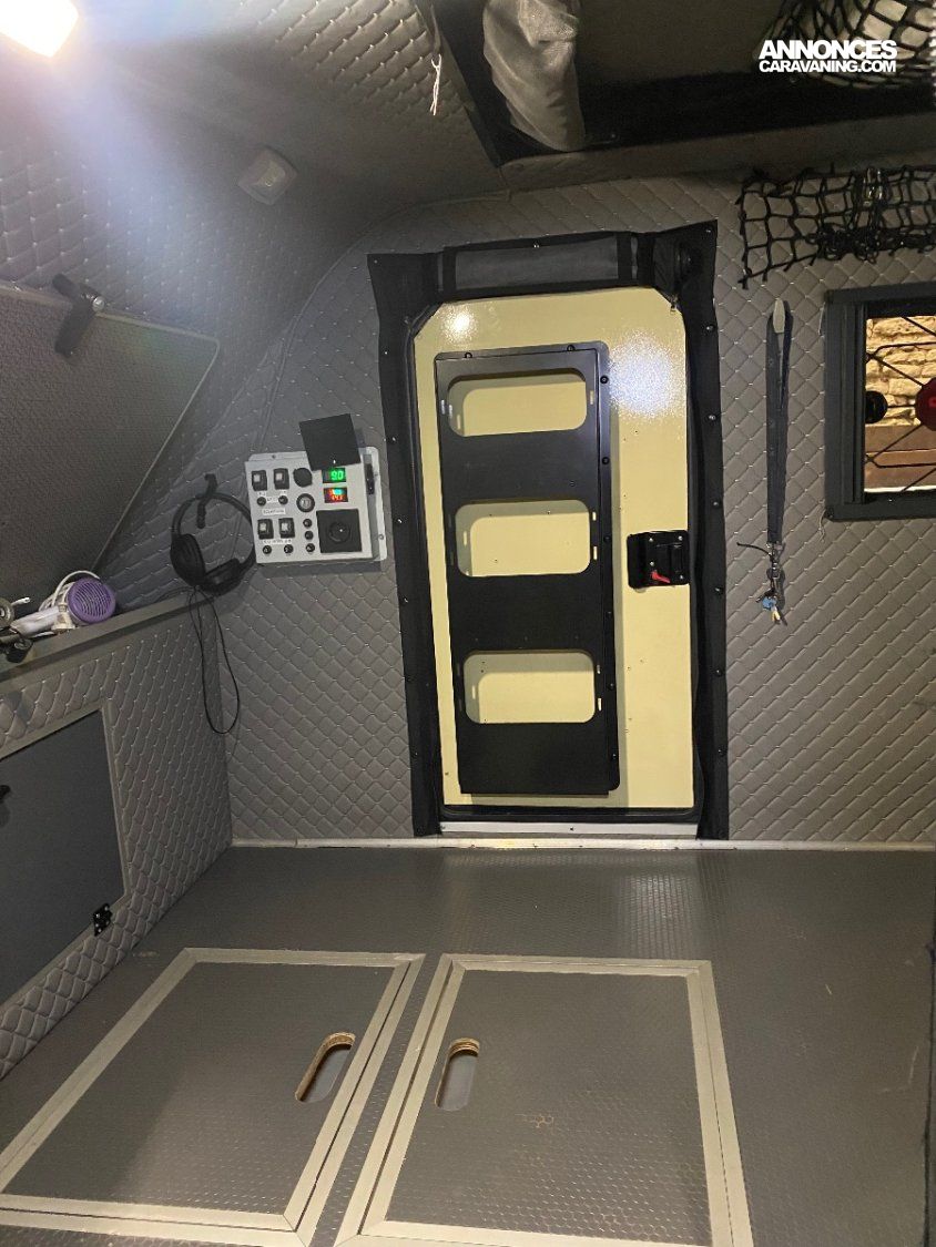 Moustiquaire. Modèle construit tout en aluminium, ce qui lui donne un poids roulant de moins de 750 kg, ce qui la rend utilisable sur la route par un simple permis, B