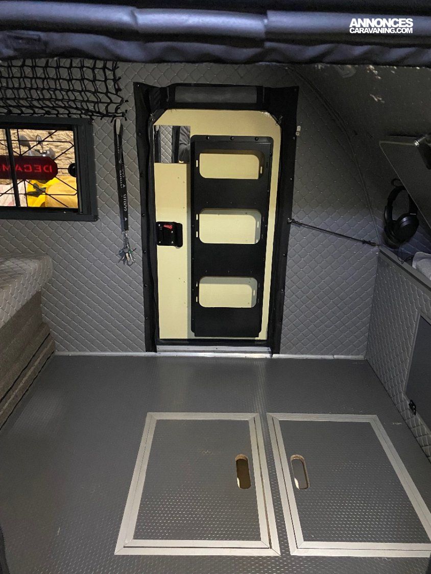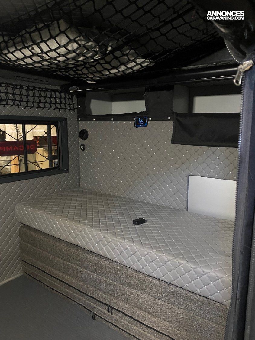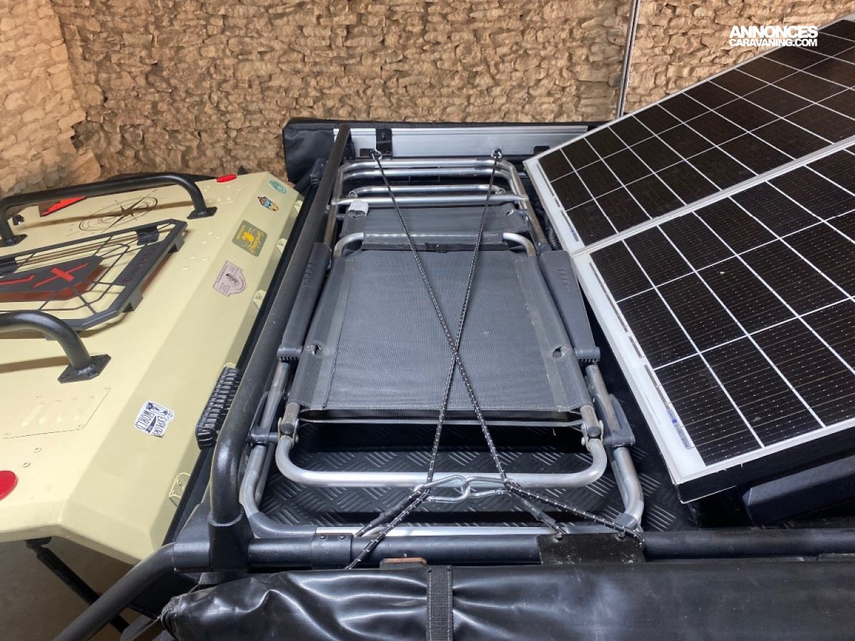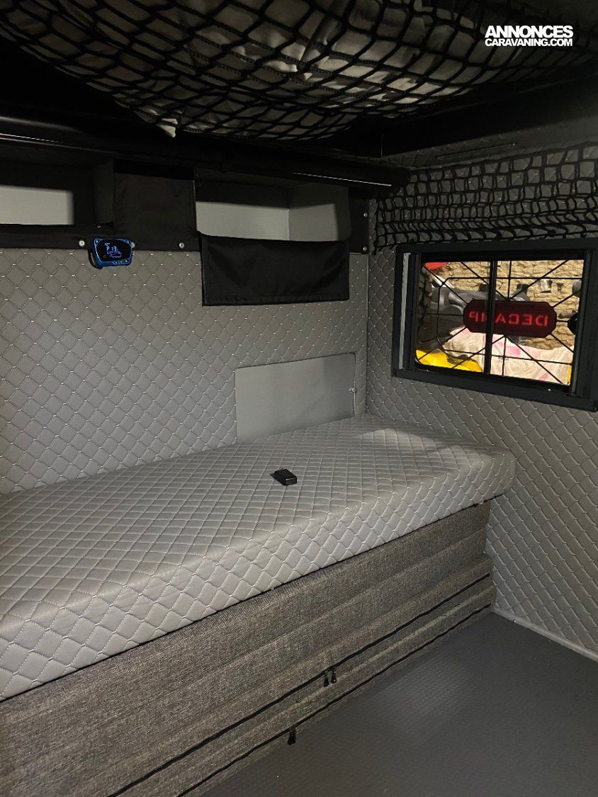 Moustiquaire. Modèle construit tout en aluminium, ce qui lui donne un poids roulant de moins de 750 kg, ce qui la rend utilisable sur la route par un simple permis, B