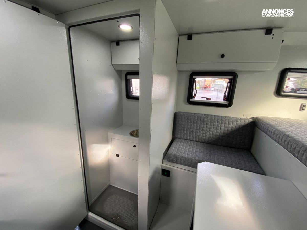 Douche intérieure (190 cm h × 77 cm l × 75 cm p) avec option eau chaude pour un vrai confort où que vous soyez.