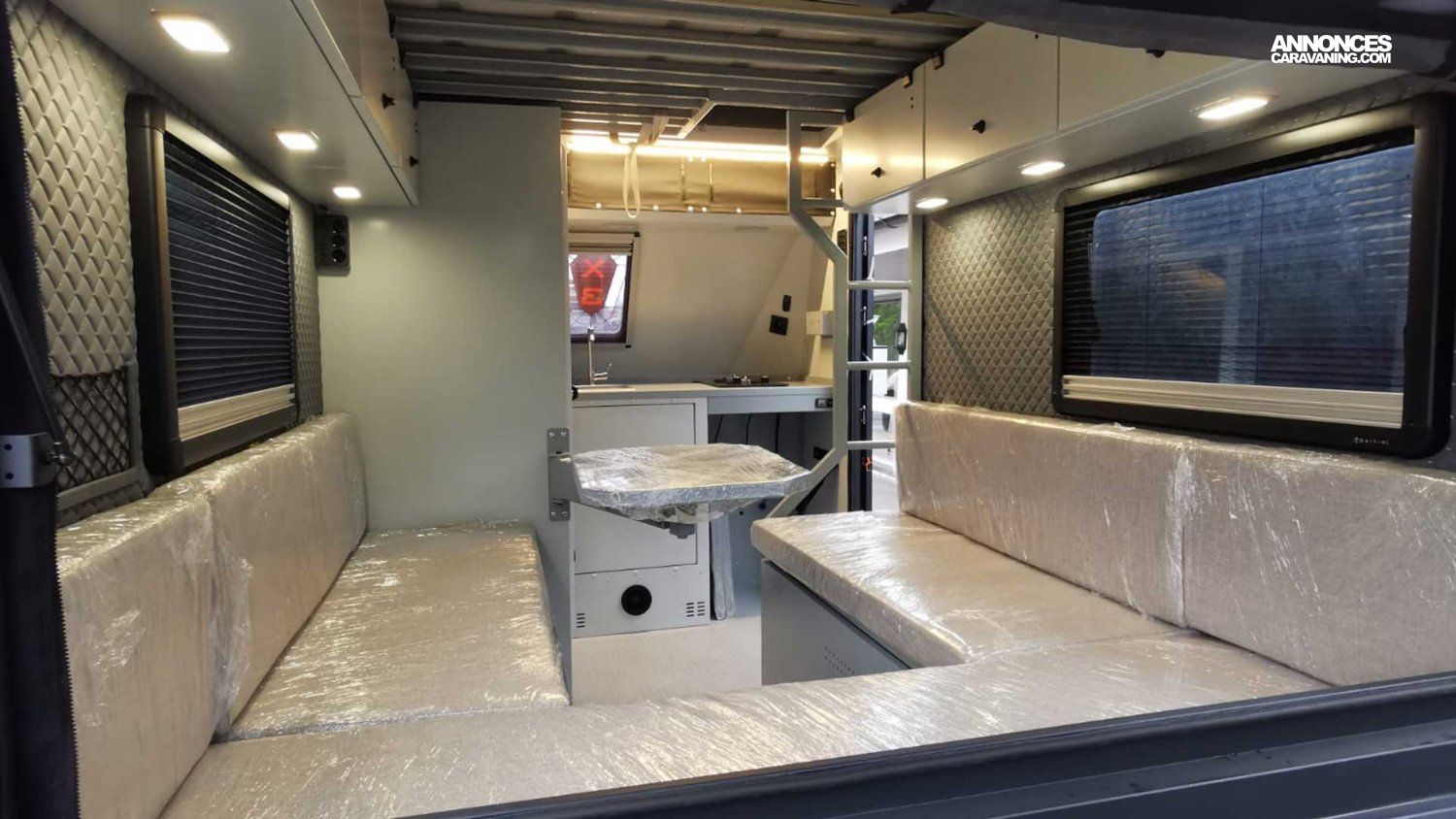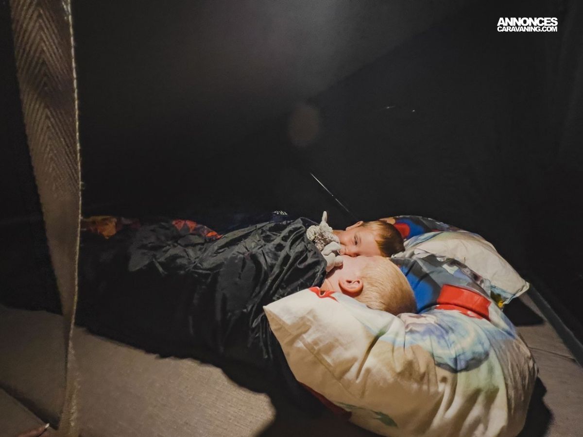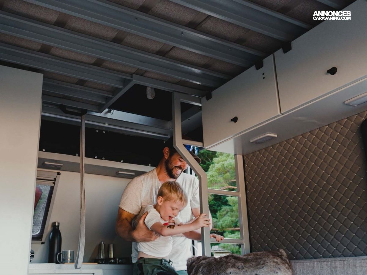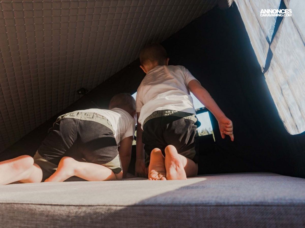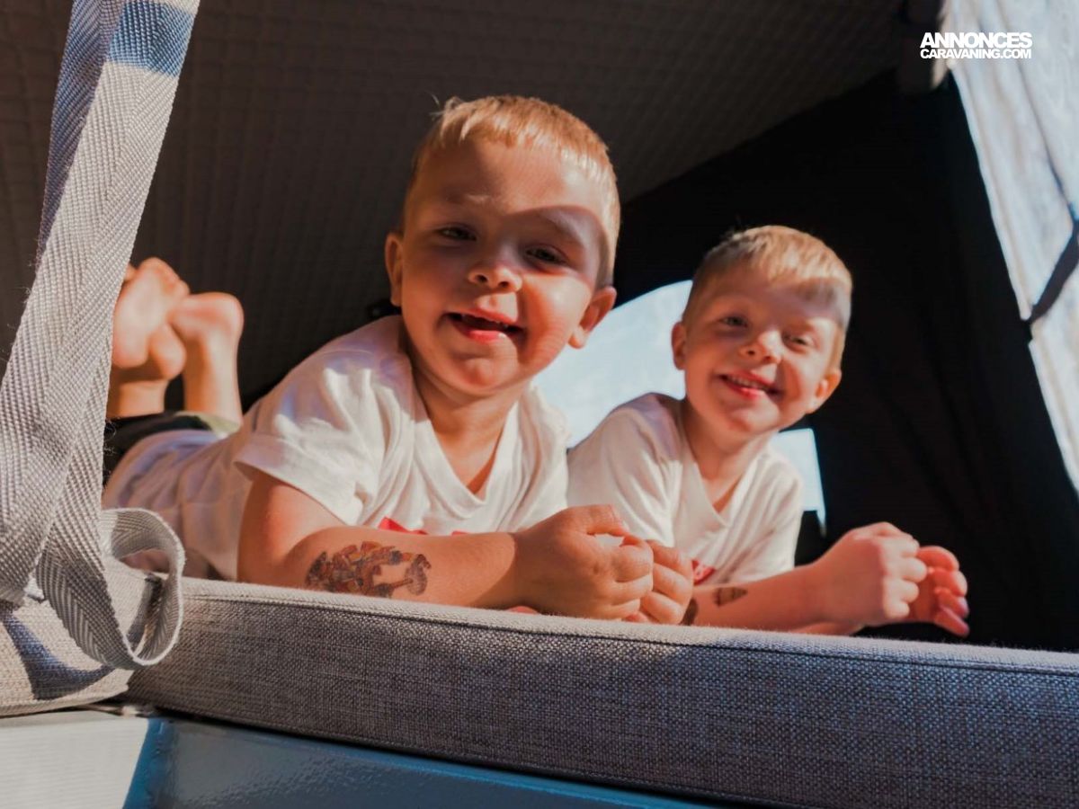 • En option : couchage double supérieur (lit étage) : 200 x 150 cm (jusqu’à 4 adultes au total)