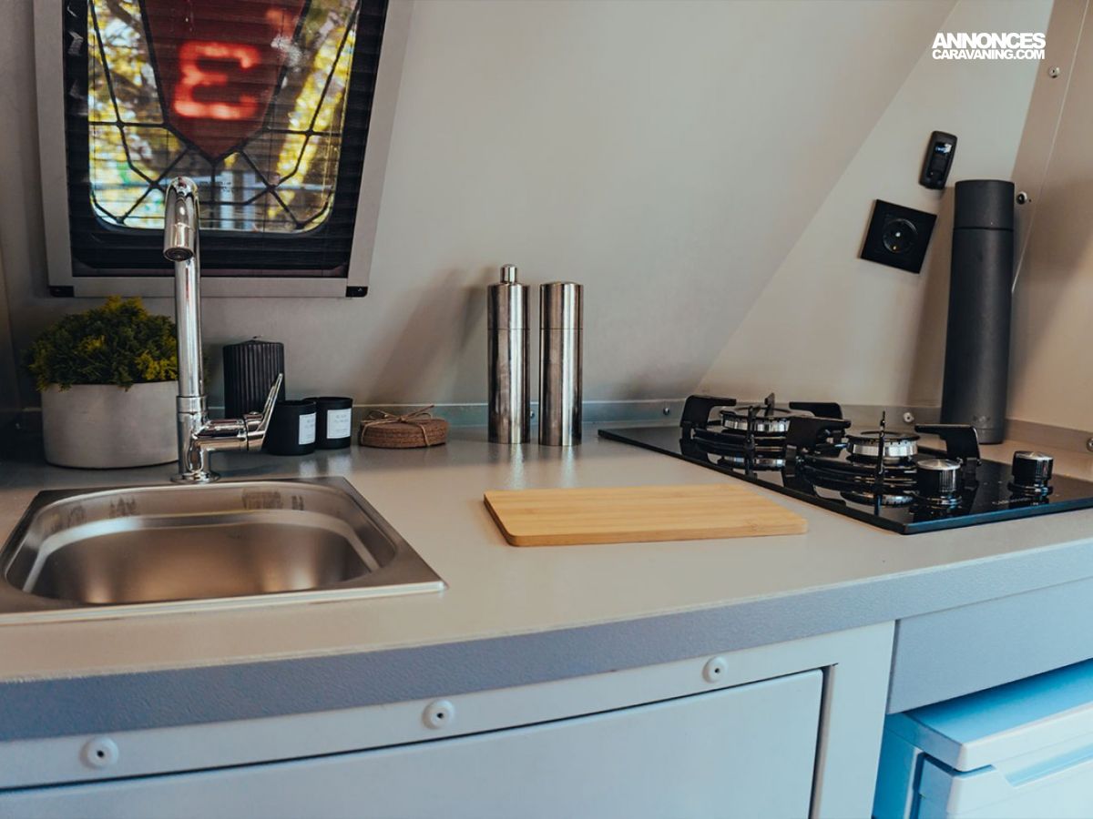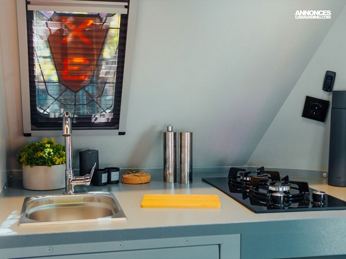 ✅ Cuisine intérieure, réservoir d’eau 115 L, douchette extérieure