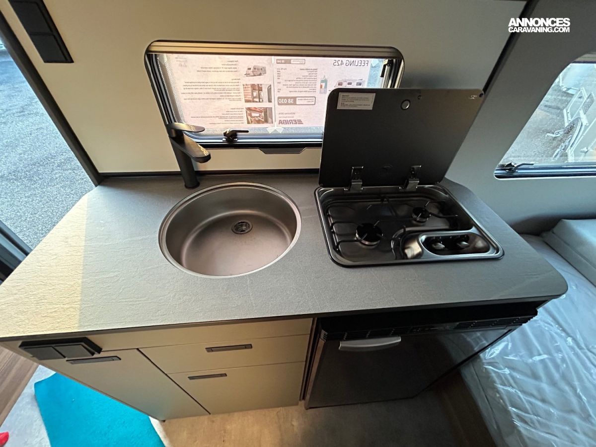 Découvrez la ERIBA Feeling 425, une caravane compacte, légère et moderne, idéale pour les voyageurs à la recherche de simplicité, de confort et de liberté. Son format maniable et son aménagement bien pensé en font une alliée parfaite pour les escapades à deux ou en famille.