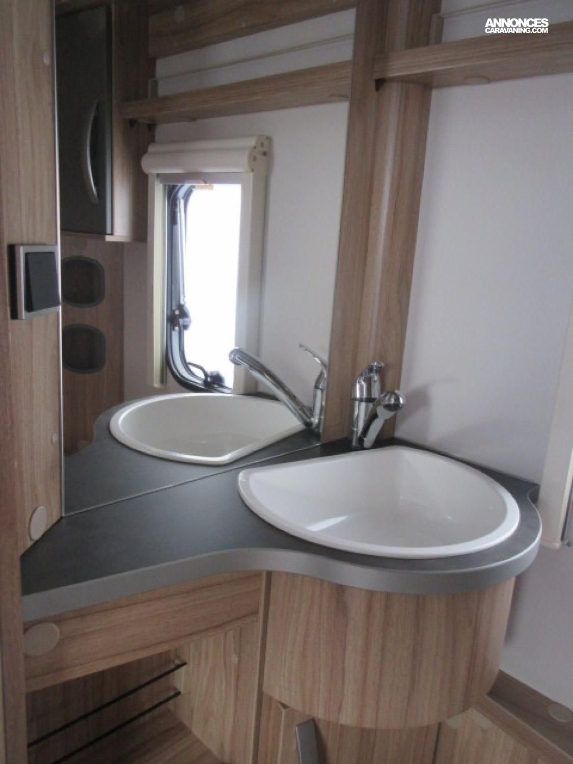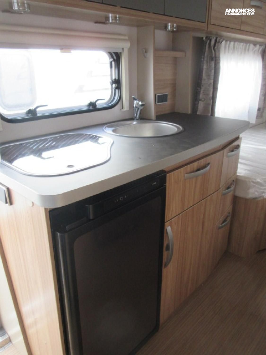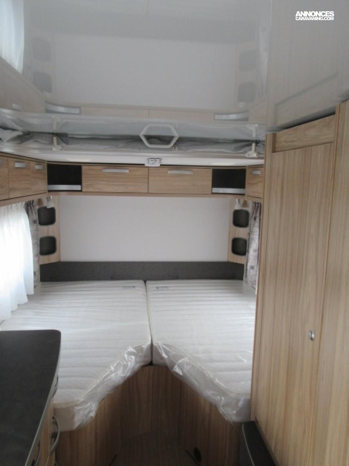 Dimensions couchage avant : 200 x 93 - 130 cm, Dimensions couchage arrière : 200 x 200 cm, Réchaud à gaz 3 feux avec sécurité d'allumage, allumage électrique, pare-flammes et couvercle en verre, Boutons de réchaud amovibles, Paroi anti-éclaboussures en verre, Réfrigérateur à absorption 81 L avec freezer, Installation des circuits d'eau résistants au gel pour une utilisation en hiver, Réservoir eau propre 45 L, Prise 230V dans salle d'eau, la cuisine et le salon, Chauffage au gaz Truma S 3004, Meuble haut avec miroir et étagères de rangement, Miroir rétro-éclairé, Baie salle d'eau projetante et opaque avec store occultant et moustiquaire, Toilettes banc avec indicateur de niveau et cassette su roulettes ainsi que réservoir de chasse d'eau indépendant