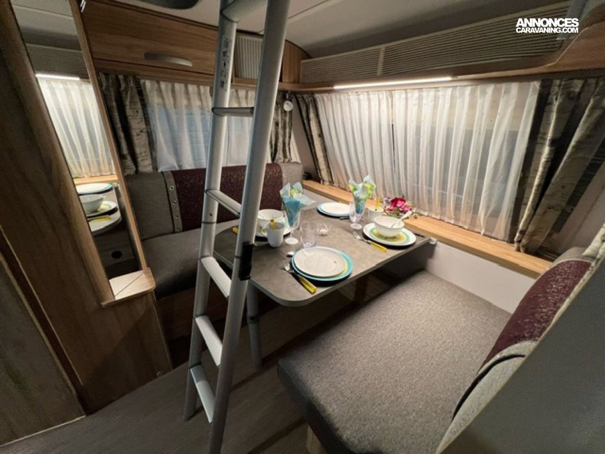 L'Eriba Feeling 442 avec son couchage sous toit relevable est idéale pour les vacances en famille : 4 couchages permanents et la dînette toujours disponible ! Elle est conçue pour être autonome totalement (Combi 4 Truma + batterie auxiliaire) et son niveau d'équipement est excellent. Elle est compacte (2m17 de large et 2m46 de hauteur).