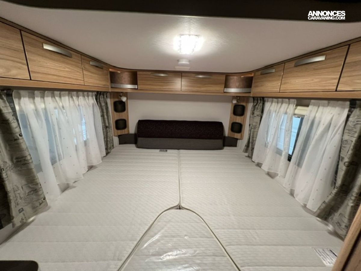 Couchage permanent sur toute la largeur de la caravane avec entrée facilitée au centre (200x200)